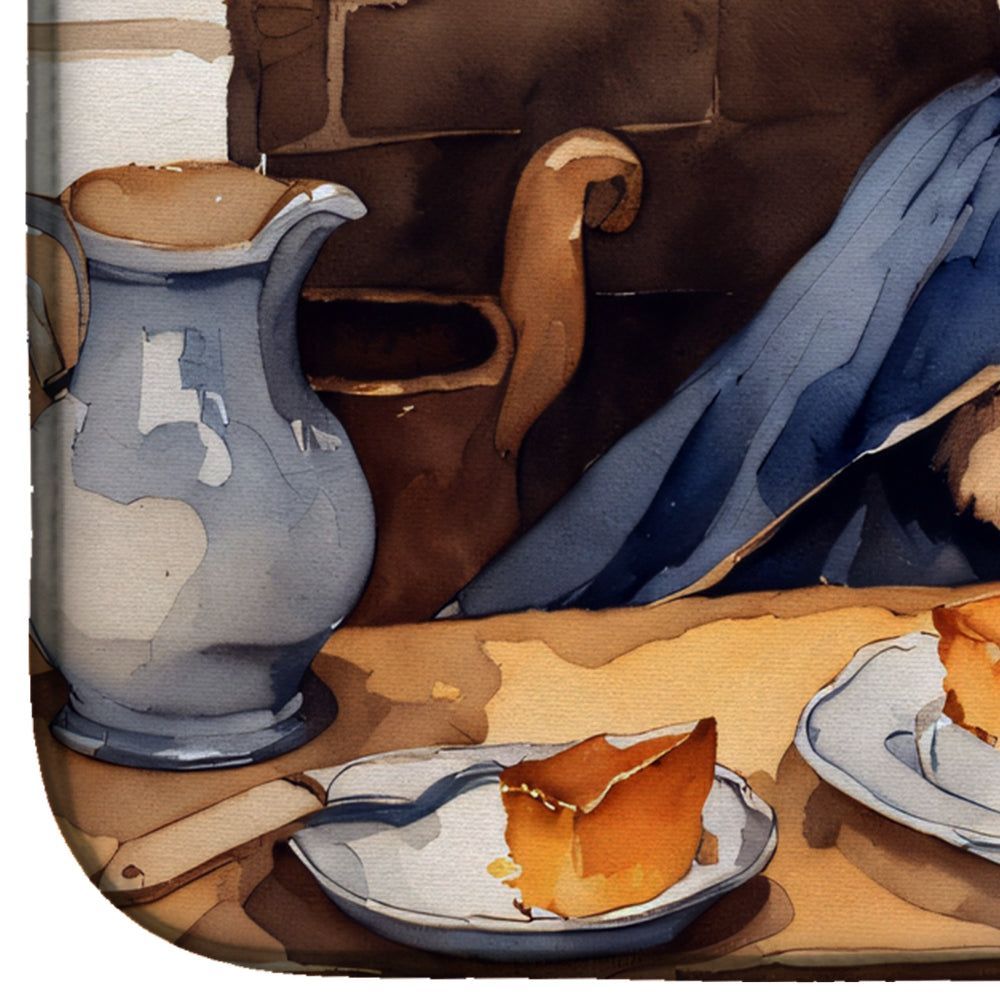 Dish Drying Mat featuring breed specific Border Terrier artwork. Celebrate Halloween with this Halloween Dish Drying Mat. Say goodbye to messy countertops and soggy dish towels with our innovative dish drying mat. Our high-quality dish drying pad is designed to keep your countertops dry while offering a stylish and efficient solution. Whether you're air drying dishes, glasses, stemware, silverware, pots, pans, bottles, or even fruits and vegetables, our dish mat is the perfect choice. The 14 inches x 22 inches size fits most counters and dish drying racks, and the non-slip design ensures stability. Made with water-absorbent polyester and a polyurethane foam insert, our dish drying mat is not only functional but also durable. It's machine washable and printed in the USA for long-lasting use. The beautiful artwork adds flair to your kitchen decor, making it a perfect housewarming gift or present for any occasion. Upgrade your kitchen experience with our absorbent and versatile dish drying mat.
