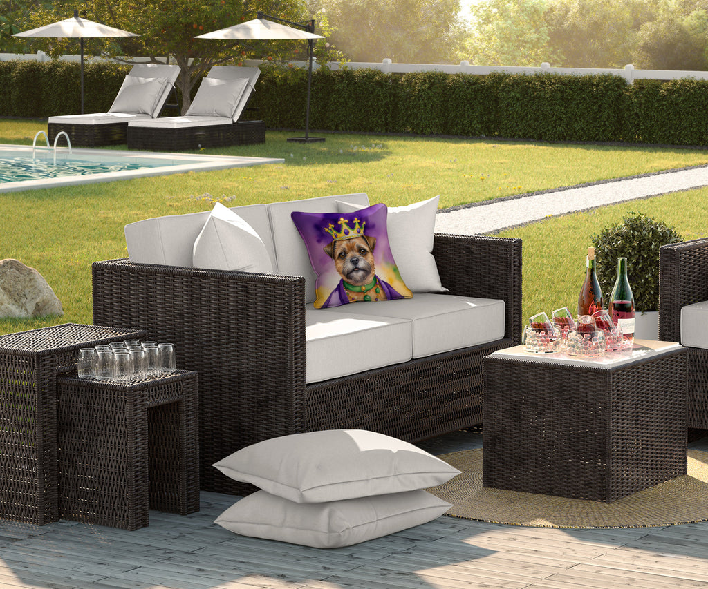 Throw Pillow featuring breed specific Border Terrier artwork. Celebrate Mardi Gras with this Mardi Gras Pillow. Revitalize your outdoor or indoor living space with Caroline's Treasures 18x18 Fabric Decorative Pillow. With a generously sized dimension of approximately 18 inches by 18 inches, this pillow makes a comfortable and aesthetic addition to any seating area. Made from a unique, water-resistant material developed by Caroline's Treasures, the pillow sham is 100% polyester fabric that's durable and ready to weather any condition. Its vibrant, full-color artwork will not fade over time as it is dyed with color-fast dyes. Whether you place it on your patio furniture, porch, veranda, or indoor couch, its soft canvas fabric ensures a cozy experience. The pillow is handcrafted in the United States, featuring a sham created from three pieces of fabric and a polyester insert for enduring shape and overstuffed comfort. Despite being robustly built to endure the outdoors, it is as soft and snug as your favorite indoor cushions. Please note, as all our pillows are handmade, sizes may vary slightly, adding to the charm of this unique decorative item.