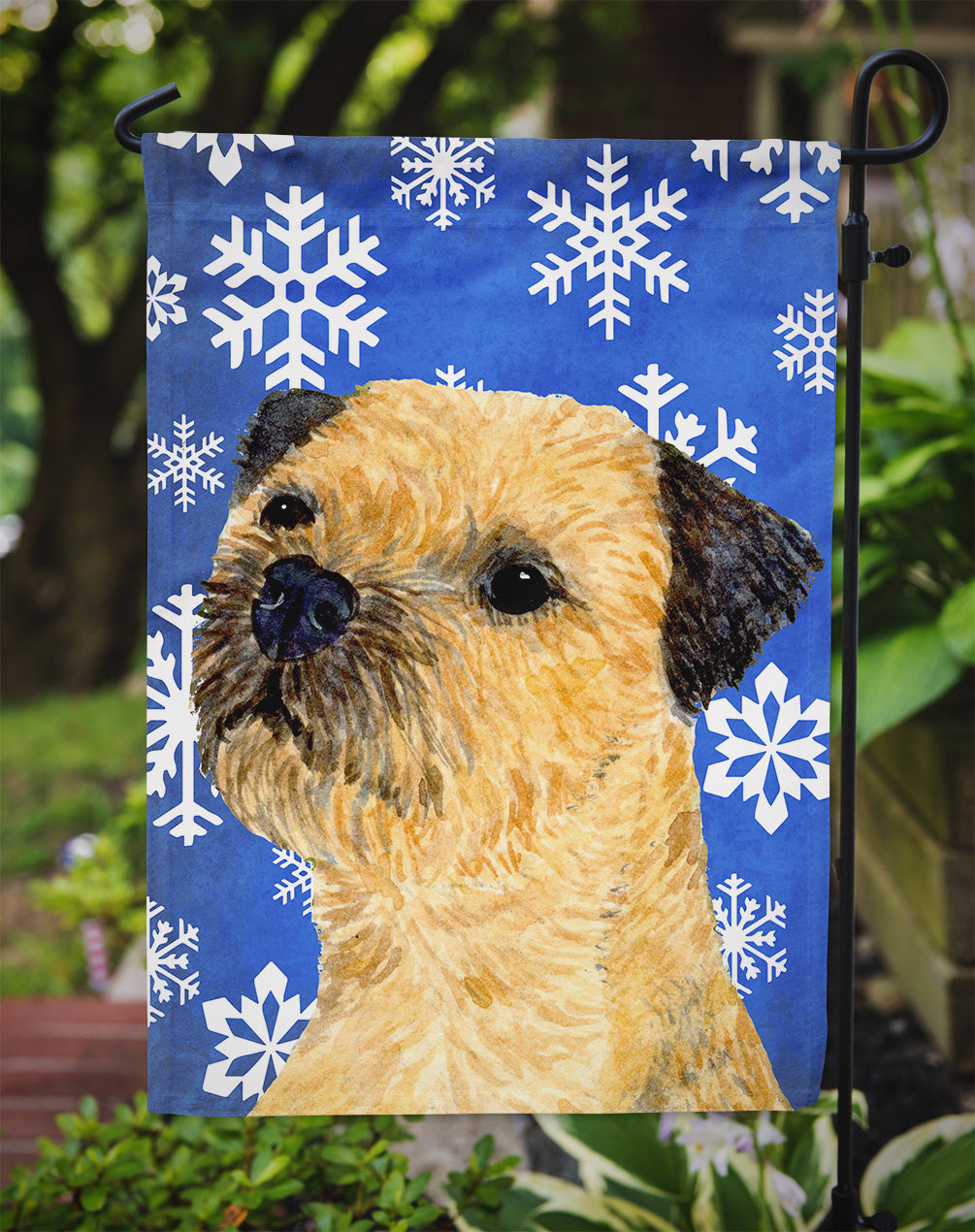 Decorate your space with our Christmas Border Terrier artwork on a Garden Flag. Bring a bit of Winter into your home with a Winter Garden Flag. Enhance the beauty of your garden, patio, or yard with Caroline's Treasures Decorative Garden Flag, proudly made in the USA. Crafted from two pieces of thick, double-sided polyester fabric, this 2-ply garden flag is designed to withstand various weather conditions, making it water-resistant and weatherproof. Featuring correctly readable words on both sides, this garden flag offers a delightful visual experience from any angle. With its heavier weight, it stands out among other garden flags, ensuring stability and durability even in wind, rain, and snow. Measuring approximately 11 1/4 inches by 15 1/2 inches, this flag allows you to personalize your outdoor decor. It comes with a 1 1/2-inch sleeve sewn in, allowing easy attachment to any standard garden flag stand or garden size porch hanger (sold separately). Make a statement in your outdoor space with Caroline's Treasures Decorative Garden Flag, a vibrant and high-quality flag that adds color and personality to your surroundings. Proudly made in the USA, it's a symbol of quality craftsmanship and attention to detail.