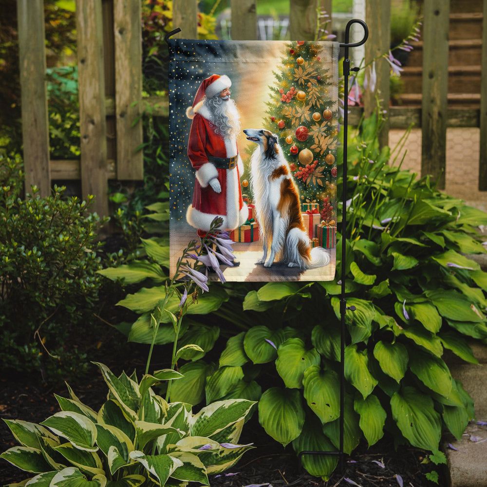 Bring a festive, canine-inspired charm to your garden with this breed specific dog and Santa Claus Garden Flag. Featuring a heartwarming ‘Moments with Santa Claus’ scene, this durable, weather-resistant flag is perfect for any dog lover’s holiday decor. Whether for personal use or as a thoughtful gift, this festive yard flag adds a cozy, seasonal touch to any outdoor space. Ideal for pet-friendly homes, it captures the holiday spirit while showcasing your love for dogs.Decorate your space with our Christmas Borzoi Russian Wolfhound artwork on a Garden Flag. Enhance the beauty of your garden, patio, or yard with Caroline's Treasures Decorative Garden Flag, proudly made in the USA. Crafted from two pieces of thick, double-sided polyester fabric, this 2-ply garden flag is designed to withstand various weather conditions, making it water-resistant and weatherproof. Featuring correctly readable words on both sides, this garden flag offers a delightful visual experience from any angle. With its heavier weight, it stands out among other garden flags, ensuring stability and durability even in wind, rain, and snow. Measuring approximately 11 1/4 inches by 15 1/2 inches, this flag allows you to personalize your outdoor decor. It comes with a 1 1/2-inch sleeve sewn in, allowing easy attachment to any standard garden flag stand or garden size porch hanger (sold separately). Make a statement in your outdoor space with Caroline's Treasures Decorative Garden Flag, a vibrant and high-quality flag that adds color and personality to your surroundings. Proudly made in the USA, it's a symbol of quality craftsmanship and attention to detail.