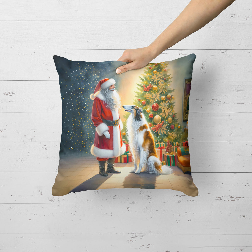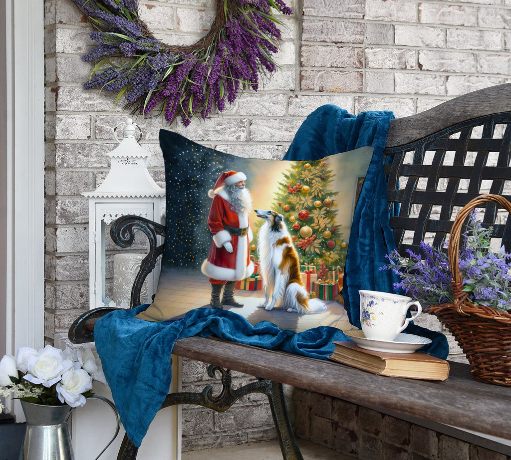Throw Pillow featuring breed specific Borzoi Russian Wolfhound artwork. Celebrate Christmas with this Christmas Pillow. Revitalize your outdoor or indoor living space with Caroline's Treasures 18x18 Fabric Decorative Pillow. With a generously sized dimension of approximately 18 inches by 18 inches, this pillow makes a comfortable and aesthetic addition to any seating area. Made from a unique, water-resistant material developed by Caroline's Treasures, the pillow sham is 100% polyester fabric that's durable and ready to weather any condition. Its vibrant, full-color artwork will not fade over time as it is dyed with color-fast dyes. Whether you place it on your patio furniture, porch, veranda, or indoor couch, its soft canvas fabric ensures a cozy experience. The pillow is handcrafted in the United States, featuring a sham created from three pieces of fabric and a polyester insert for enduring shape and overstuffed comfort. Despite being robustly built to endure the outdoors, it is as soft and snug as your favorite indoor cushions. Please note, as all our pillows are handmade, sizes may vary slightly, adding to the charm of this unique decorative item.