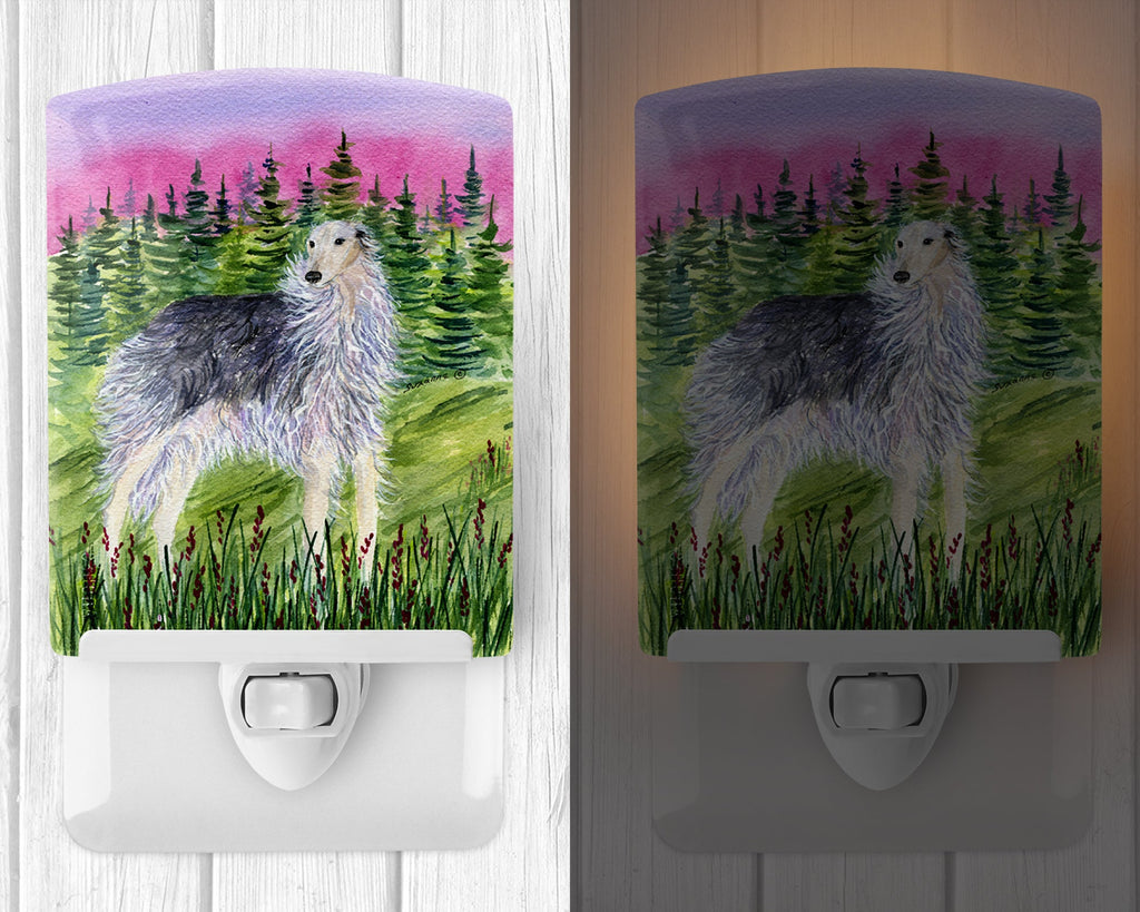 Decorate your space with our Borzoi/Russian Wolfhound artwork on a Night Light. Introduce a splash of artistic flair and subtle illumination to your space with the Decorative Ceramic Night Light from Caroline's Treasures. Perfect for any room, this night light seamlessly blends functionality with an aesthetic appeal, offering a stylish solution to brighten up dark corners of your home or office. Boasting a six-inch high by four-inch wide ceramic tile at the front, it showcases vivid, full-color artwork from distinguished artists, transforming a simple utility into a vibrant art piece. The artwork is securely encased in a robust metal holder, ensuring durability and longevity. Two screws are provided to firmly affix the tile into the holder. The holder extends three inches deep, housing an included bulb that emits a soft, welcoming glow. This product meets all safety standards, as evidenced by its UL approval. Proudly made in the United States from imported components, this Decorative Ceramic Night Light is not just a functional device; it's a statement piece that enhances the ambiance of your surroundings.