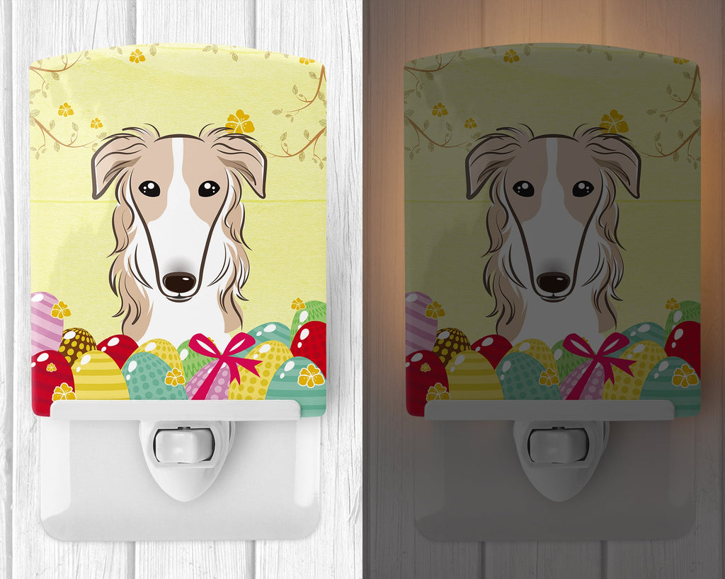 Decorate your space with our Easter Borzoi/Russian Wolfhound artwork on a Night Light. Introduce a splash of artistic flair and subtle illumination to your space with the Decorative Ceramic Night Light from Caroline's Treasures. Perfect for any room, this night light seamlessly blends functionality with an aesthetic appeal, offering a stylish solution to brighten up dark corners of your home or office. Boasting a six-inch high by four-inch wide ceramic tile at the front, it showcases vivid, full-color artwork from distinguished artists, transforming a simple utility into a vibrant art piece. The artwork is securely encased in a robust metal holder, ensuring durability and longevity. Two screws are provided to firmly affix the tile into the holder. The holder extends three inches deep, housing an included bulb that emits a soft, welcoming glow. This product meets all safety standards, as evidenced by its UL approval. Proudly made in the United States from imported components, this Decorative Ceramic Night Light is not just a functional device; it's a statement piece that enhances the ambiance of your surroundings.