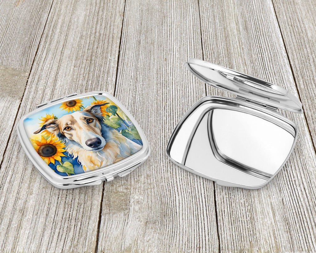 Borzoi in Sunflowers Compact Mirror – Stylish Purse Mirror with Artistic Covers