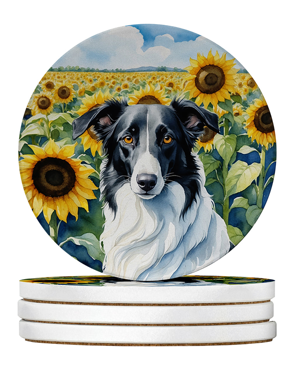 Borzoi in Sunflowers Large Sandstone Coasters Pack of 4
