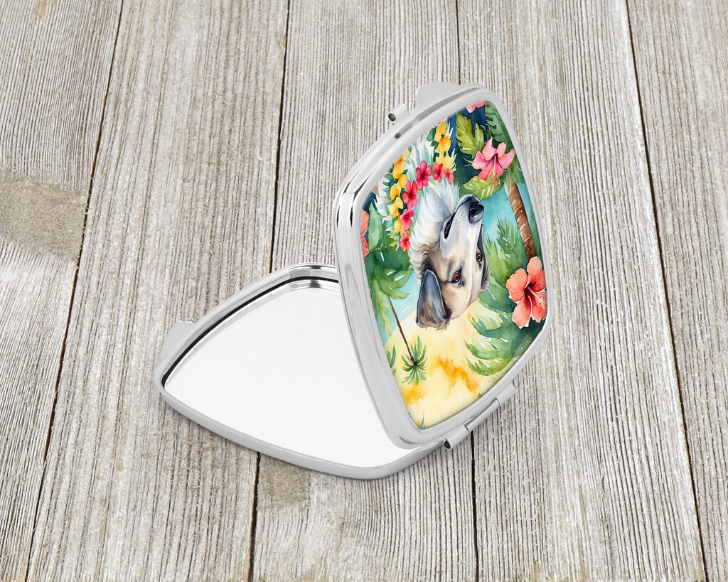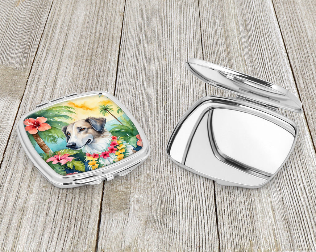 Decorate your space with our Borzoi Russian Wolfhound artwork on a Compact Mirror. Bring a bit of Summer into your home with a Summer Compact Mirror. Introducing our Square Compact Mirror, a blend of elegance, functionality, and compactness, perfect for on-the-go touch-ups. This Silvertone metal mirror, with dimensions of 2.75 inches x 3 inches x .3 inches, fits effortlessly into your purse, handbag, or pocket, ensuring that you can check your appearance anytime, anywhere. Our compact mirror stands out with its eye-catching artwork on the front, adding a dash of style to this practical accessory. It is more than just a mirror; it's a statement piece that reflects your personality and aesthetic. When opened, this compact reveals two mirrors inside, doubling your perspective for precise touch-ups. The Silvertone metal construction ensures durability while maintaining a lightweight feel, making it an ideal everyday carry item. Whether you're rushing to a meeting, prepping for a dinner date, or just need a quick check on your look, our Square Compact Mirror is your reliable companion. Experience the perfect blend of style and practicality with this must-have accessory.