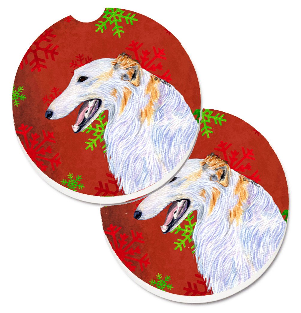 Borzoi Red and Green Snowflakes Holiday Christmas Car Coasters – Set of 2 - Absorbent Stone with Fun & Functional Artwork SS4682CARC