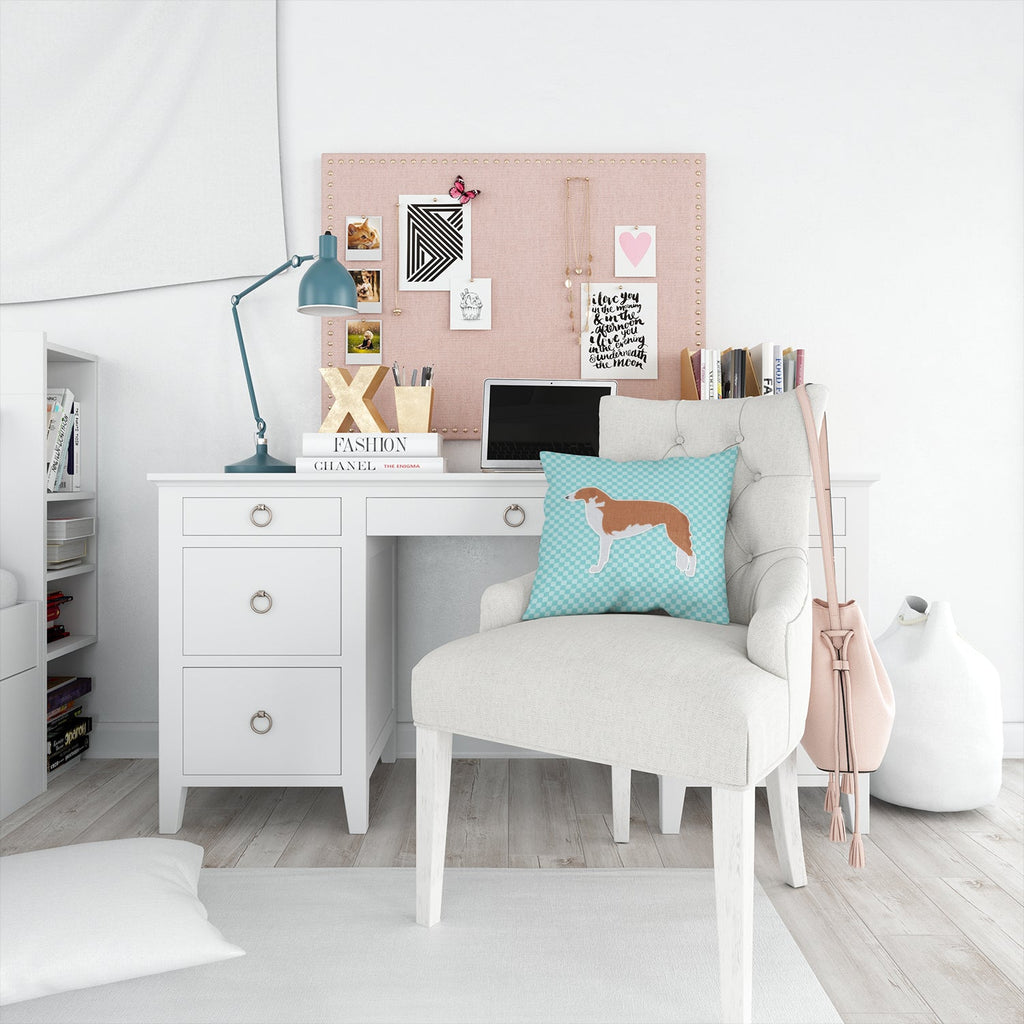 Borzoi Russian Greyhound Checkerboard Blue Throw Pillow - 14x14 Decorative Pillow – Art for Your Home & Patio BB3699PW1414