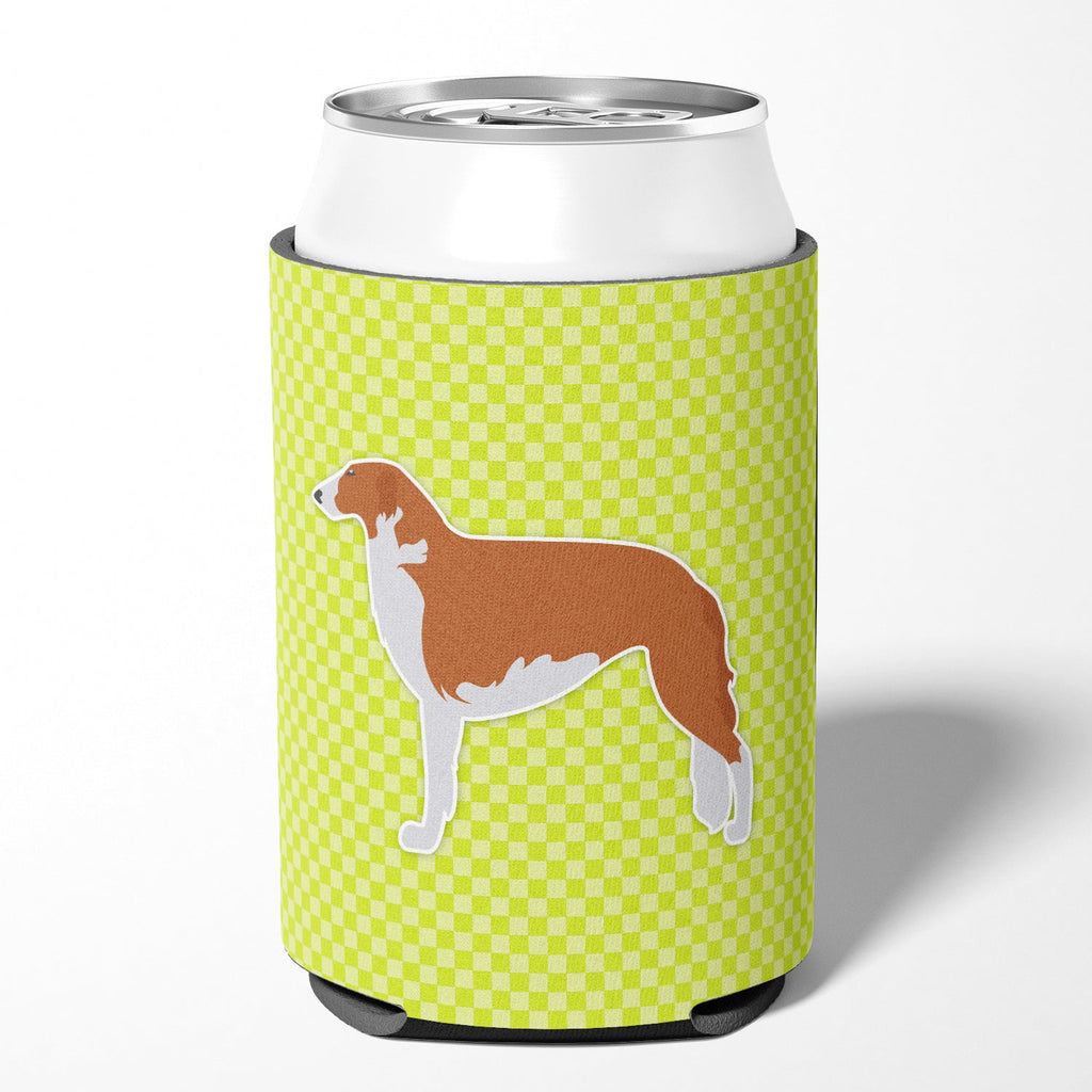 Borzoi Russian Greyhound Checkerboard Green Can or Bottle Hugger BB3799CC
