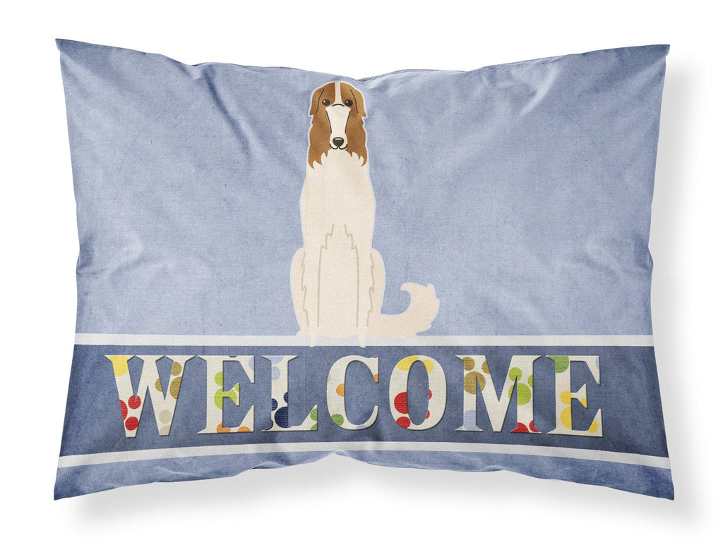 Borzoi Welcome Fabric Standard Pillowcase – Artistic Decorative Front, White Back BB5604PILLOWCASE