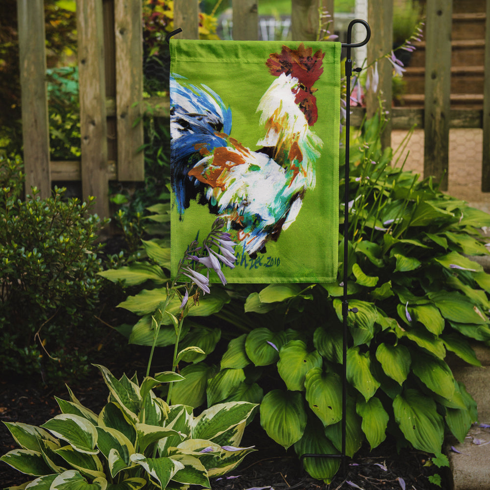 Decorate your space with our Rooster artwork on a Garden Flag. Enhance the beauty of your garden, patio, or yard with Caroline's Treasures Decorative Garden Flag, proudly made in the USA. Crafted from two pieces of thick, double-sided polyester fabric, this 2-ply garden flag is designed to withstand various weather conditions, making it water-resistant and weatherproof. Featuring correctly readable words on both sides, this garden flag offers a delightful visual experience from any angle. With its heavier weight, it stands out among other garden flags, ensuring stability and durability even in wind, rain, and snow. Measuring approximately 11 1/4 inches by 15 1/2 inches, this flag allows you to personalize your outdoor decor. It comes with a 1 1/2-inch sleeve sewn in, allowing easy attachment to any standard garden flag stand or garden size porch hanger (sold separately). Make a statement in your outdoor space with Caroline's Treasures Decorative Garden Flag, a vibrant and high-quality flag that adds color and personality to your surroundings. Proudly made in the USA, it's a symbol of quality craftsmanship and attention to detail.