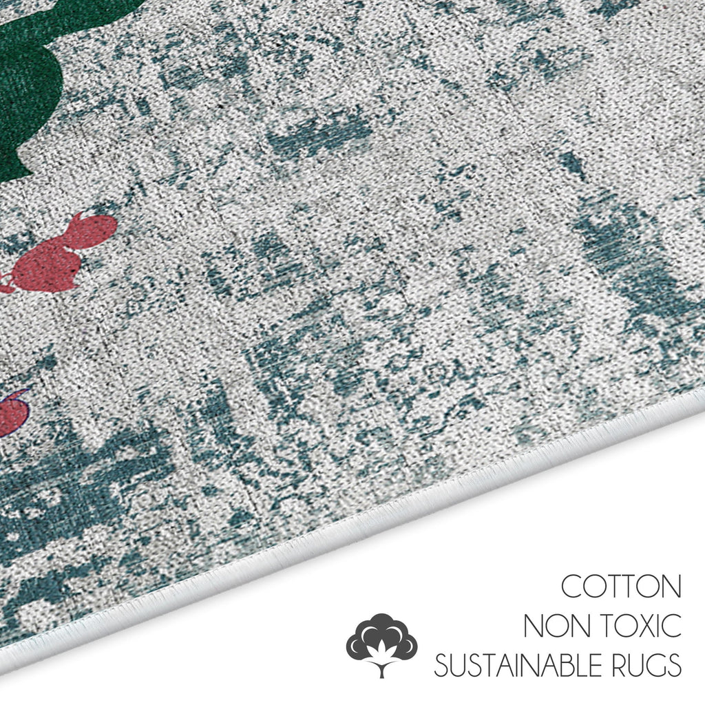 Made of 70% cotton and 30% polyester, this premium mat feels soft as a cloud and the surface does not feel itchy or rough under your feet. It is printed with beautiful patterns that will go with any home decor theme or color palette. It also quickly absorbs moisture so you won't have to worry about walking on it while soaking wet from a bath.