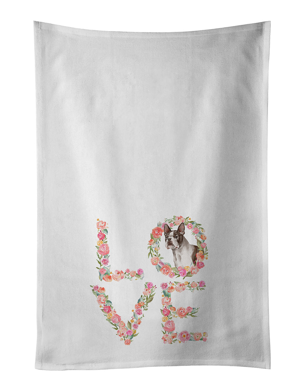 Boston Terrier #2 Love White Kitchen Towel Set of 2 Dish Towels