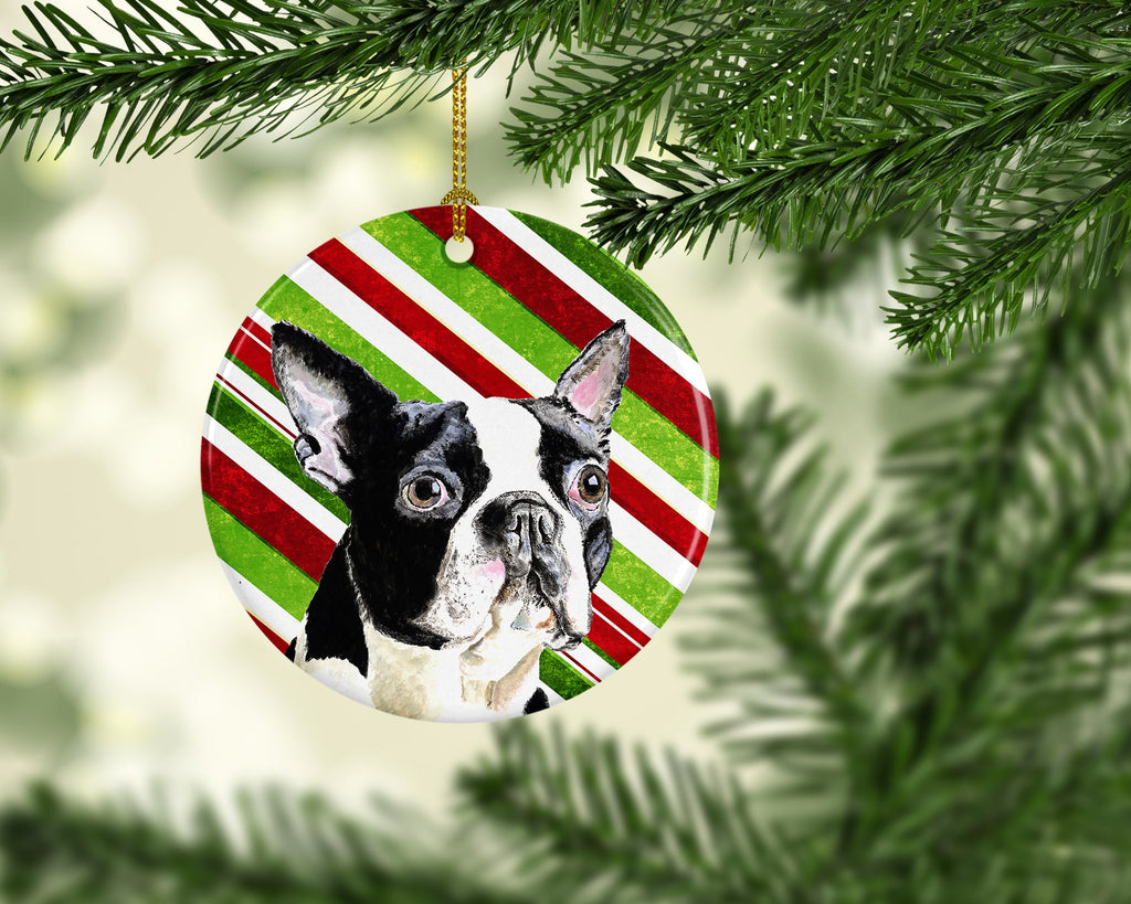 Decorate your space with our Christmas Boston Terrier artwork on a Ornament. Add a touch of personalized charm to your Christmas tree this holiday season with our Ceramic Ornament. Measuring 2.8125 inches in diameter, this round porcelain ornament beautifully reflects your festive lights, enhancing your holiday decor. The gloss surface sets off the vibrant, full-color artwork contributed by one of our talented artists, bringing a pop of color and joy to your tree. This Ceramic Ornament doesn't stop at being merely decorative. The white back is designed for personalization. Write a heartfelt message, mark a special year, or inscribe a date with a paint pen or a permanent marker to create a treasured memento. Please ensure you allow any personalization to dry thoroughly before handling to maintain the pristine finish. Included with the ornament is a delicate gold cord for easy hanging. Made in the USA, this Ceramic Ornament makes an exceptional gift for a pet sitter, teacher, family member, or anyone you wish to share a little Christmas magic with. With its blend of style, charm, and personal touch, it's a meaningful addition to any Christmas tree.