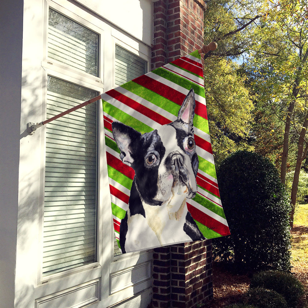 Boston Terrier Candy Cane Holiday Christmas Flag Canvas House Size
