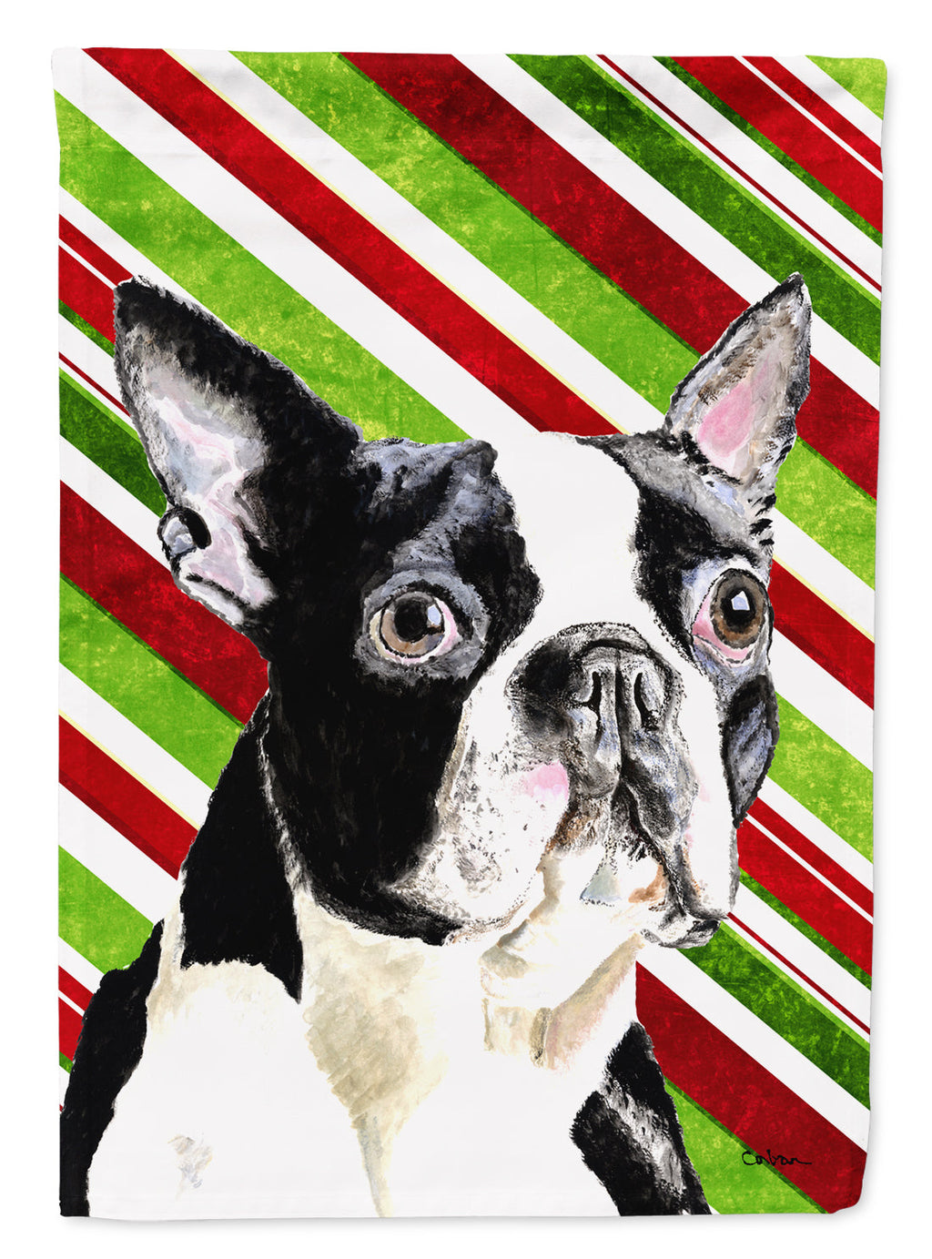Decorate your space with our Christmas Boston Terrier artwork on a Garden Flag. Enhance the beauty of your garden, patio, or yard with Caroline's Treasures Decorative Garden Flag, proudly made in the USA. Crafted from two pieces of thick, double-sided polyester fabric, this 2-ply garden flag is designed to withstand various weather conditions, making it water-resistant and weatherproof. Featuring correctly readable words on both sides, this garden flag offers a delightful visual experience from any angle. With its heavier weight, it stands out among other garden flags, ensuring stability and durability even in wind, rain, and snow. Measuring approximately 11 1/4 inches by 15 1/2 inches, this flag allows you to personalize your outdoor decor. It comes with a 1 1/2-inch sleeve sewn in, allowing easy attachment to any standard garden flag stand or garden size porch hanger (sold separately). Make a statement in your outdoor space with Caroline's Treasures Decorative Garden Flag, a vibrant and high-quality flag that adds color and personality to your surroundings. Proudly made in the USA, it's a symbol of quality craftsmanship and attention to detail.