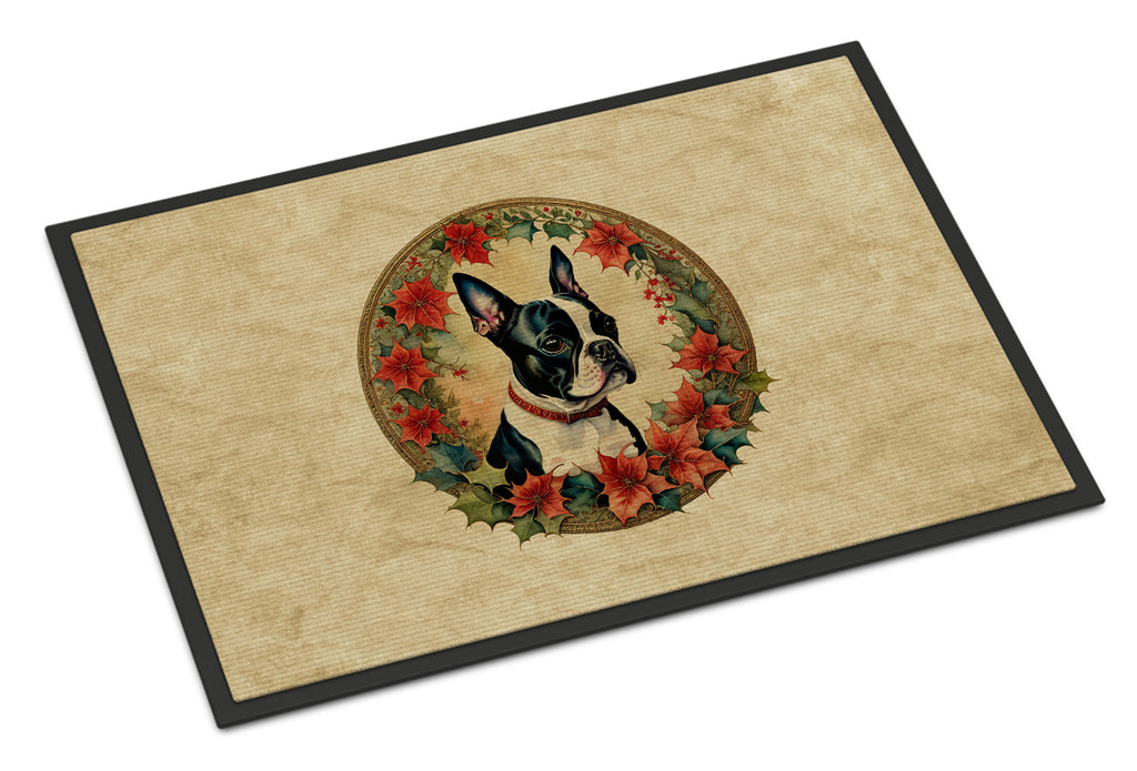 Boston Terrier Christmas Flowers Doormat