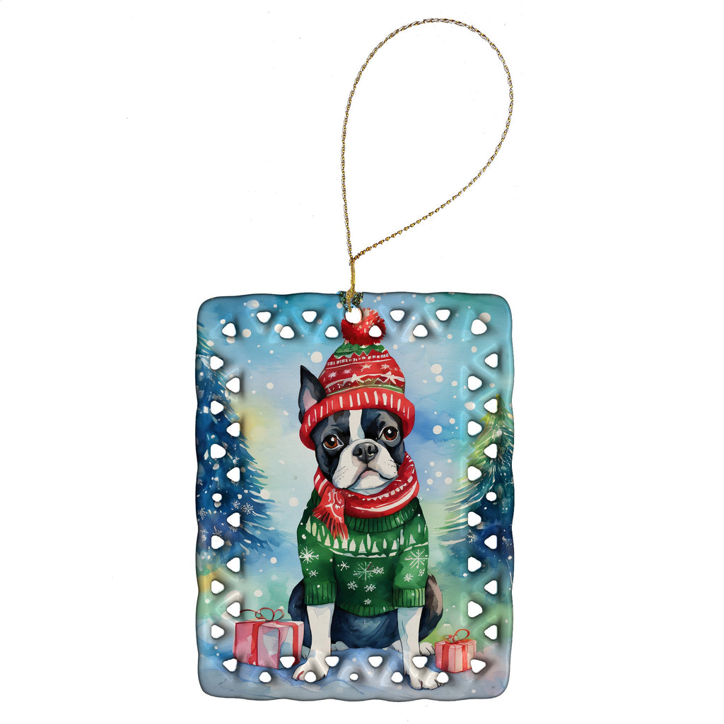 Boston Terrier Christmas Porcelain Ornament
