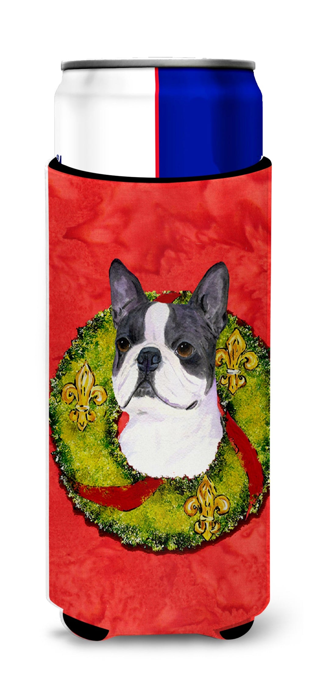 Decorate your space with our Boston Terrier artwork on a Slim Can Hugger. Elevate your beverage experience with our Slim Can Huggers, uniquely designed to fit a variety of your favorite 12 oz slim cans. Perfectly suited for Michelob Ultra, Starbucks Refreshers, Heineken Light, Bud Lite Lime, Dry Soda, Coors, Resin, Vitaminwater Energy, and Perrier Cans, our huggers ensure your drink stays refreshingly cool. The feature that sets our can huggers apart is the striking full-color artwork, exclusively created by one of our talented artists. It adds a touch of individuality and style to your drink, making it easier to identify in a crowd. A unique blend of practicality and flair, these huggers are an absolute must-have at any gathering. Our can huggers are not just beautiful but also incredibly durable. The design won't fade or peel off, and they can be safely cleaned in a washing machine. These collapsible beverage insulators are easy to store and transport, making them perfect for all occasions. Enjoy your drinks in style and comfort with our exceptional Slim Can Huggers.