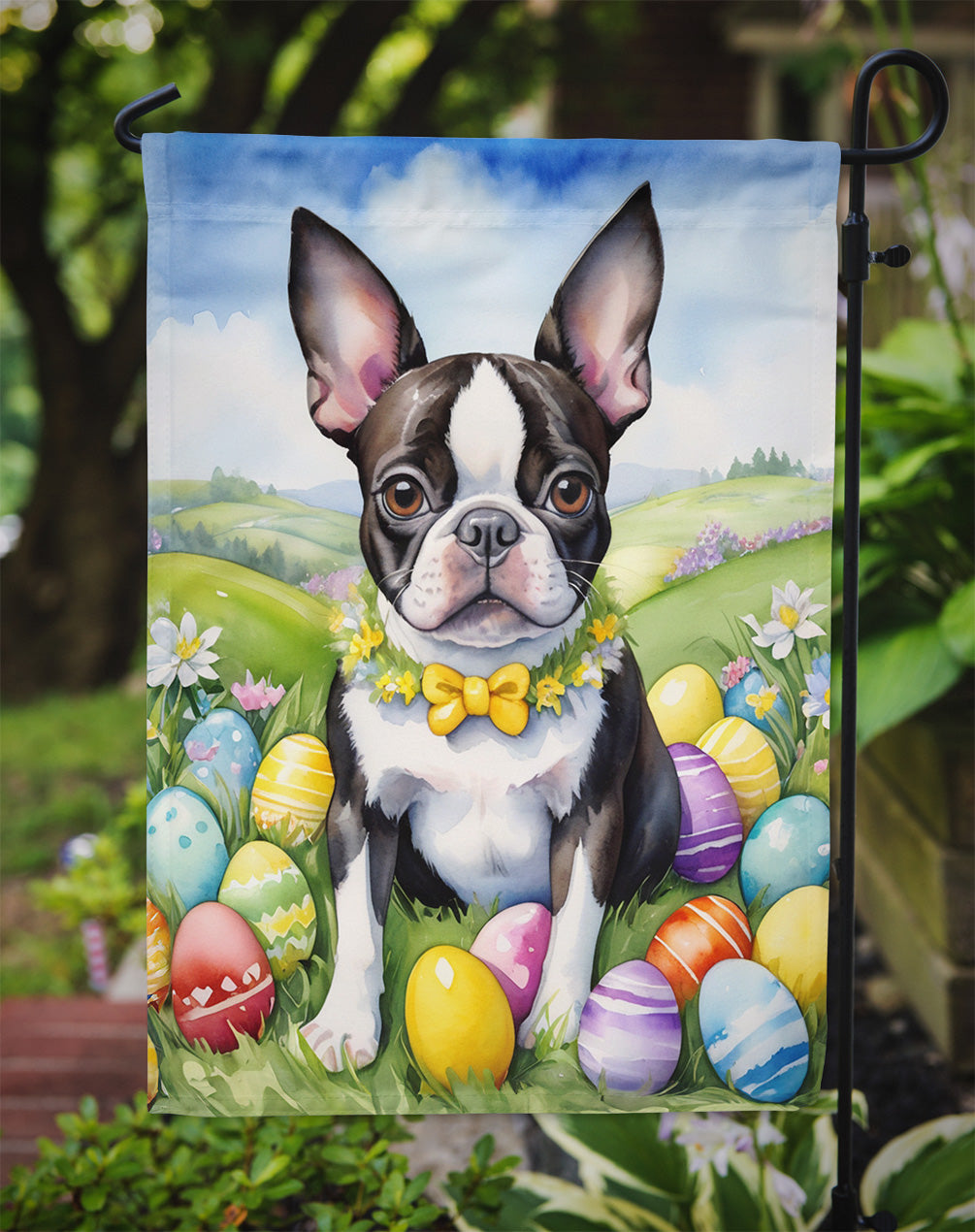 Boston Terrier Easter Garden Flag - Easter Egg Hunt - Dog-Themed Spring Yard Decor