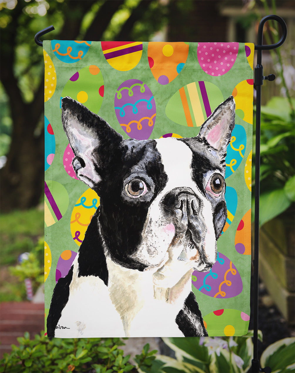 Decorate your space with our Easter Boston Terrier artwork on a Garden Flag. Enhance the beauty of your garden, patio, or yard with Caroline's Treasures Decorative Garden Flag, proudly made in the USA. Crafted from two pieces of thick, double-sided polyester fabric, this 2-ply garden flag is designed to withstand various weather conditions, making it water-resistant and weatherproof. Featuring correctly readable words on both sides, this garden flag offers a delightful visual experience from any angle. With its heavier weight, it stands out among other garden flags, ensuring stability and durability even in wind, rain, and snow. Measuring approximately 11 1/4 inches by 15 1/2 inches, this flag allows you to personalize your outdoor decor. It comes with a 1 1/2-inch sleeve sewn in, allowing easy attachment to any standard garden flag stand or garden size porch hanger (sold separately). Make a statement in your outdoor space with Caroline's Treasures Decorative Garden Flag, a vibrant and high-quality flag that adds color and personality to your surroundings. Proudly made in the USA, it's a symbol of quality craftsmanship and attention to detail.