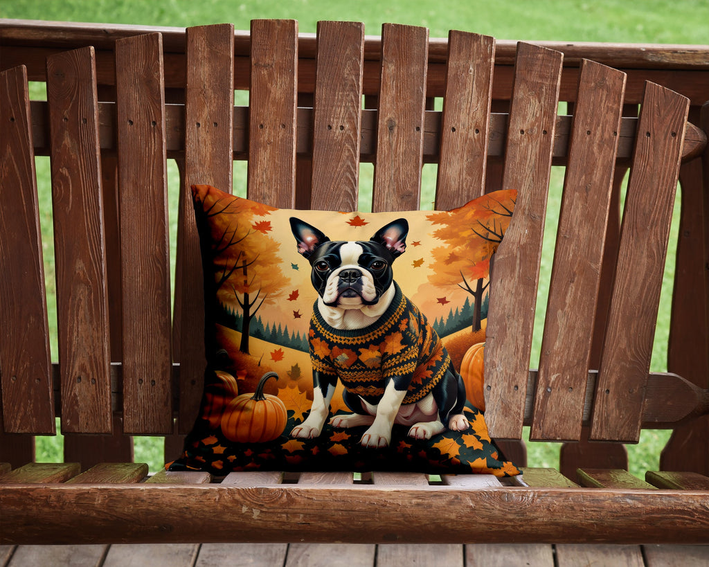Decorate your space with our Boston Terrier artwork on a Pillow. Bring a bit of Fall into your home with a Fall Pillow. Add a touch of vibrancy and comfort to your outdoor seating with Caroline's Treasures Fabric Decorative Pillow. Measuring approximately 14 inches by 14 inches, this outdoor pillow is crafted to elevate the appeal of your patio furniture, infusing it with vivid color and artistic flair. The pillow includes a 100% Polyester Fabric sham filled with a quality pillow form to provide superior comfort. Innovatively made from our brand new material, specifically woven for its water resistance, this pillow is designed for durability. The soft canvas fabric offers versatility in use, fit for your indoor couch or your outdoor patio, porch, or veranda. The fabric is dyed with colorfast dyes built for resilience against weather conditions, ensuring the pillow retains its beauty over time. Constructed by sewing three fabric pieces to create a sham, the polyester insert is then nestled inside to form the pillow, resulting in an overstuffed pillow that maintains its shape. Both the sham and the pillow insert are proudly made in the United States. As the pillows are handcrafted, there may be minor variations in size, further enhancing their unique charm. Experience comfort in style with Caroline's Treasures Fabric Decorative Pillow.