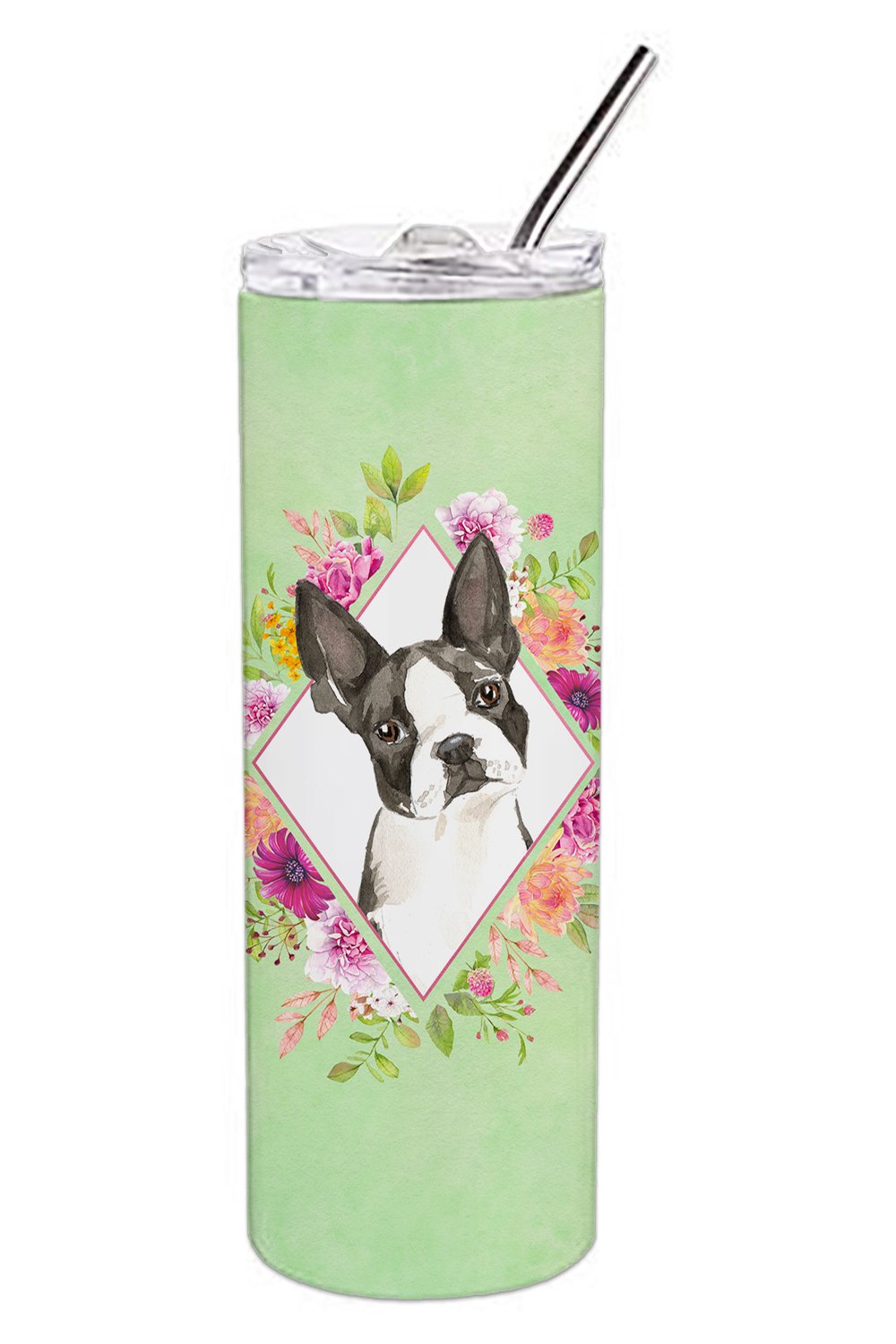 Decorate your space with our Boston Terrier artwork on a 20 oz Skinny Stainless Tumbler. Elevate your hydration experience with our Decorative Stainless Steel 20 oz Skinny Tumbler from Caroline's Treasures. This vacuum-insulated, double-walled travel mug is designed to keep your beverages hot or cold for prolonged periods, making it perfect for your coffee, tea, or cocktails. Its sleek and easy-to-grasp design, complemented by the vibrant, top-to-bottom artwork, makes it a stylish accessory for both men and women. Equipped with a secure, slide-open lid, you can enjoy your drinks without worrying about spills, while the included reusable metal straw contributes to reducing plastic use and promoting sustainability. Crafted with quality stainless steel, the tumbler is 100% BPA and Phthalate free, ensuring a safe, non-toxic experience with every sip. Not just functional, this skinny tumbler, complete with gift box, serves as a thoughtful gift for women, mothers, or any loved one. Enjoy your favorite beverages on the go in style, while making a positive impact on the environment. Remember, it's not just a drinkware, it's a lifestyle accessory! Please note: For optimum longevity, hand washing is recommended.