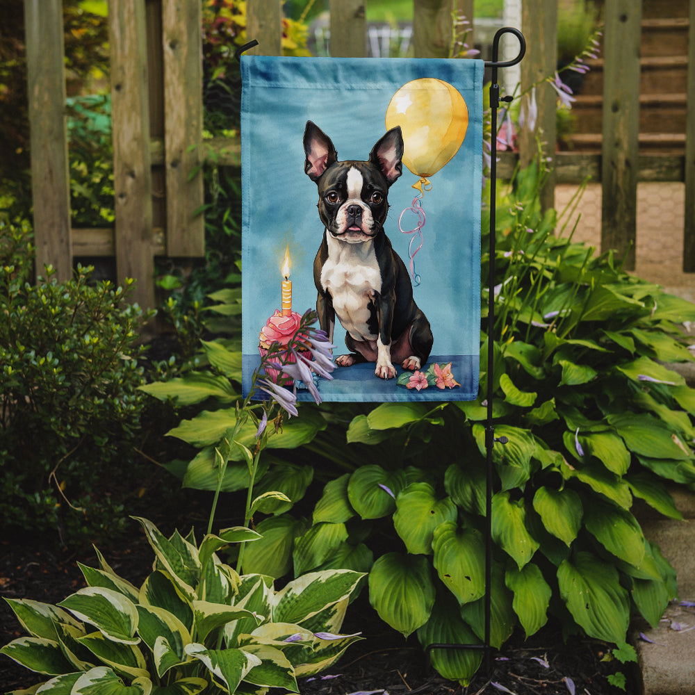 Garden Flag featuring breed specific Boston Terrier artwork. Celebrate Birthday with this Birthday Garden Flag. Enhance the beauty of your garden, patio, or yard with Caroline's Treasures Decorative Garden Flag, proudly made in the USA. Crafted from two pieces of thick, double-sided polyester fabric, this 2-ply garden flag is designed to withstand various weather conditions, making it water-resistant and weatherproof. Featuring correctly readable words on both sides, this garden flag offers a delightful visual experience from any angle. With its heavier weight, it stands out among other garden flags, ensuring stability and durability even in wind, rain, and snow. Measuring approximately 11 1/4 inches by 15 1/2 inches, this flag allows you to personalize your outdoor decor. It comes with a 1 1/2-inch sleeve sewn in, allowing easy attachment to any standard garden flag stand or garden size porch hanger (sold separately). Make a statement in your outdoor space with Caroline's Treasures Decorative Garden Flag, a vibrant and high-quality flag that adds color and personality to your surroundings. Proudly made in the USA, it's a symbol of quality craftsmanship and attention to detail.