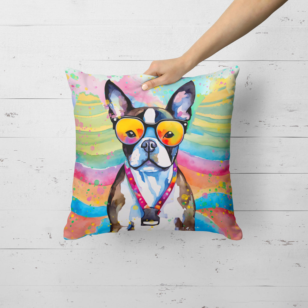 Boston Terrier Hippie Dawg Fabric Decorative Pillow