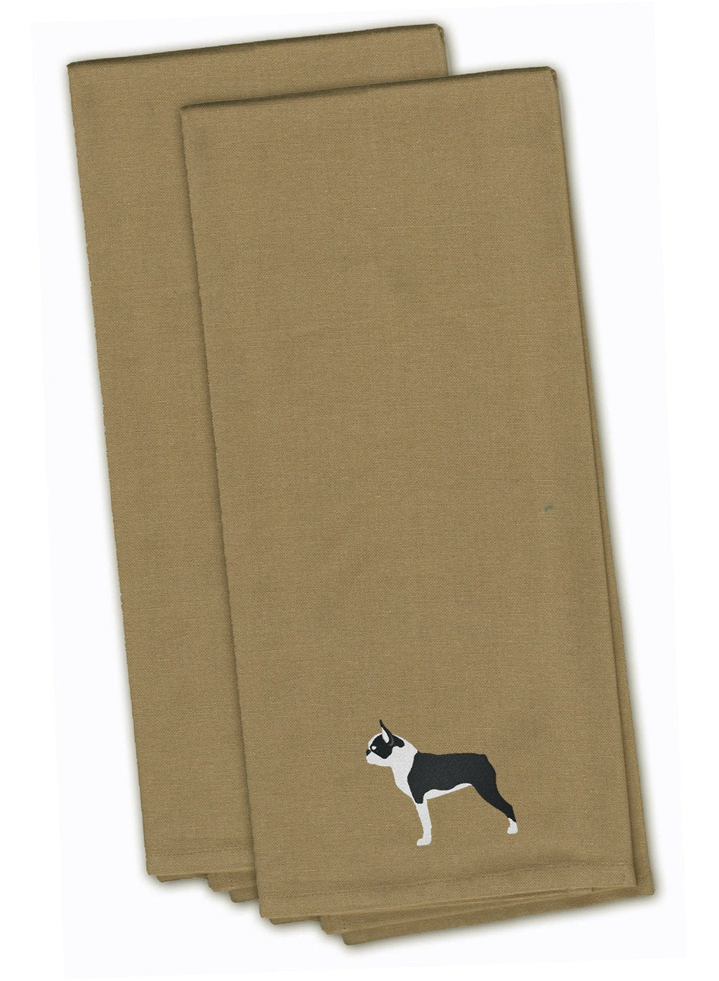 Decorate your space with our Boston Terrier artwork on a Emboidered Towels. Discover the elegant touch your kitchen deserves with the Tan Embroidered Towel Set from Caroline's Treasures. This set includes two sophisticated kitchen towels, each meticulously crafted from 100% pure cotton, promising a soft touch and superior absorbency. These generously sized towels, each measuring 19 inches by 28 inches, offer ample coverage for all your drying needs._x000B__x000B_What sets this towel set apart is the exquisite embroidered design adorning each towel. It's not just a kitchen accessory; it's a statement of taste and style. These towels are perfect for daily use, and are easy to maintain. For the best care, machine wash in cold water and dry with low heat. When ironing, please ensure to use a pressing cloth to protect the integrity of the design._x000B__x000B_Experience a blend of functionality and fashion with the Tan Embroidered Towel Set from Caroline's Treasures. Elevate your kitchen d�cor and bring a touch of luxury to your everyday tasks with these high-quality towels.