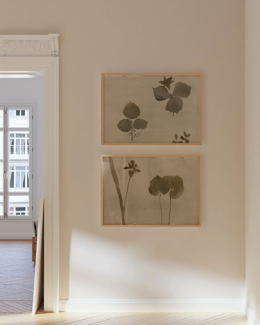 Botanical Thoughts is a series of studies focusing on shapes, using watercolor brushstrokes to create quick marks filled with texture and pigment variation. The palette is muted, and each piece feels like an old story told in whispers, inspired by the pressed botanical works of Emily Dickinson.