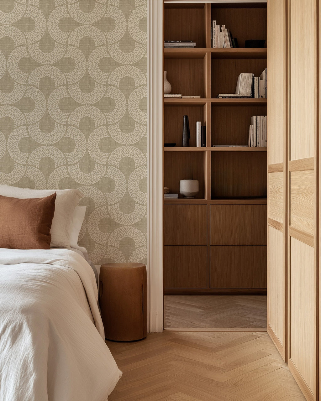 Looking for wallpaper that adds both texture and intention to your space? The Braid Arches wallpaper design by Heidi Abeline is a contemporary interpretation of traditional weaving techniques, translated into an eye-catching and calming wallcovering. With interlocking arcs that mimic natural fibers, this wallpaper brings the warmth of craftsmanship into modern interiors.