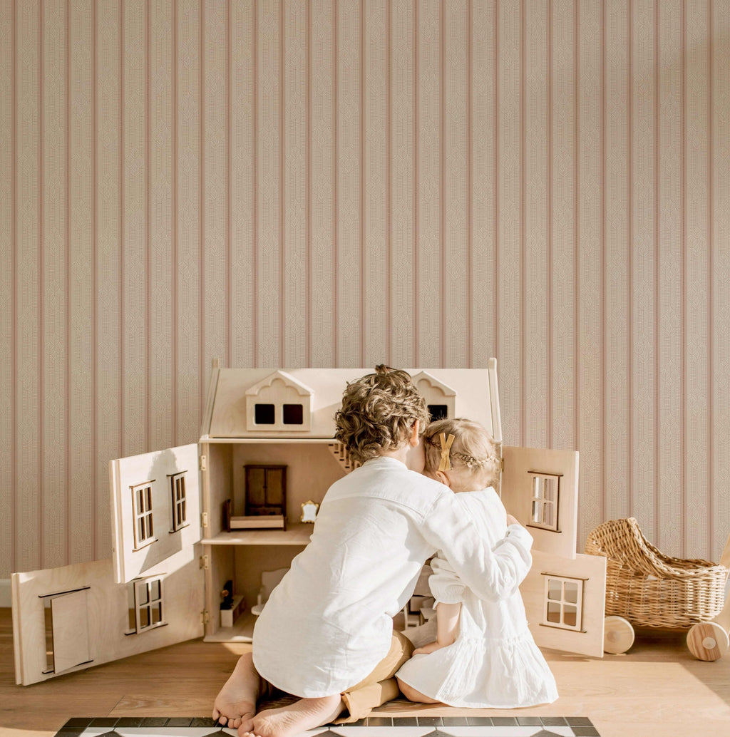 Inspired by the quiet beauty of her Danish roots, designer Heidi Abeline brings a sense of harmony and craftsmanship to every line in the Braided Stripe Wallpaper. This design draws from traditional Scandinavian textiles - particularly the structured weave of hand-braided fabrics - translated into a soft, modern vertical pattern.