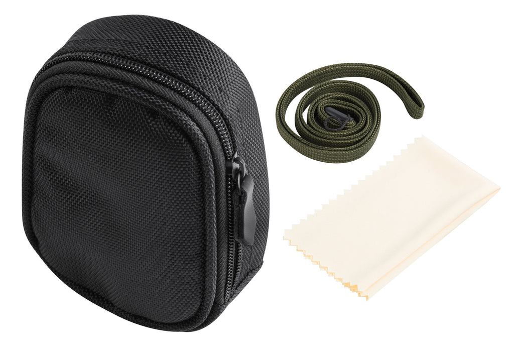 - Includes: distance & speed indicator, belt pouch, lens cloth, neck strap, manual