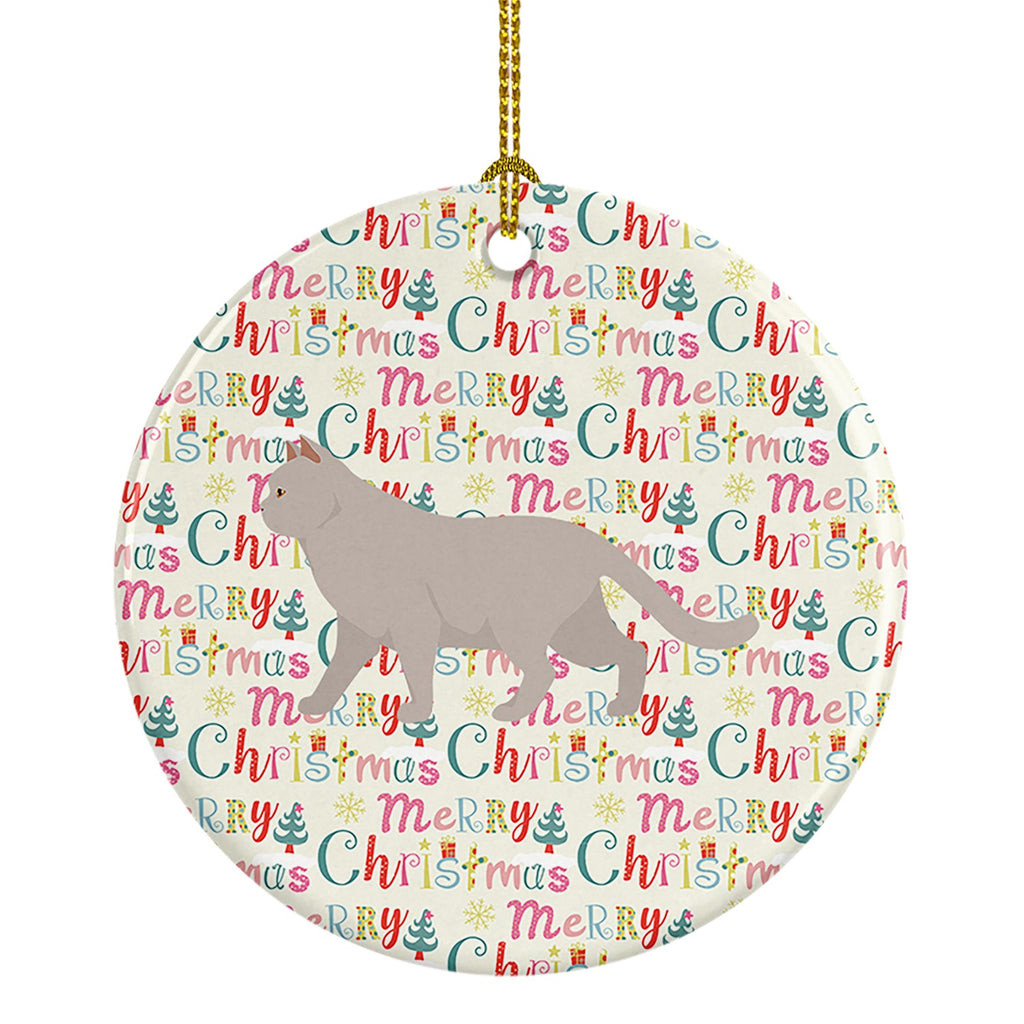 Decorate your space with our Christmas British Shorthair artwork on a Ornament. Add a touch of personalized charm to your Christmas tree this holiday season with our Ceramic Ornament. Measuring 2.8125 inches in diameter, this round porcelain ornament beautifully reflects your festive lights, enhancing your holiday decor. The gloss surface sets off the vibrant, full-color artwork contributed by one of our talented artists, bringing a pop of color and joy to your tree. This Ceramic Ornament doesn't stop at being merely decorative. The white back is designed for personalization. Write a heartfelt message, mark a special year, or inscribe a date with a paint pen or a permanent marker to create a treasured memento. Please ensure you allow any personalization to dry thoroughly before handling to maintain the pristine finish. Included with the ornament is a delicate gold cord for easy hanging. Made in the USA, this Ceramic Ornament makes an exceptional gift for a pet sitter, teacher, family member, or anyone you wish to share a little Christmas magic with. With its blend of style, charm, and personal touch, it's a meaningful addition to any Christmas tree.