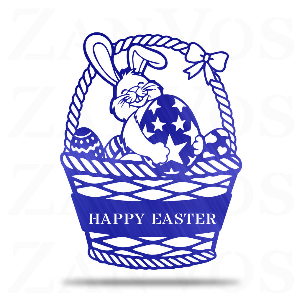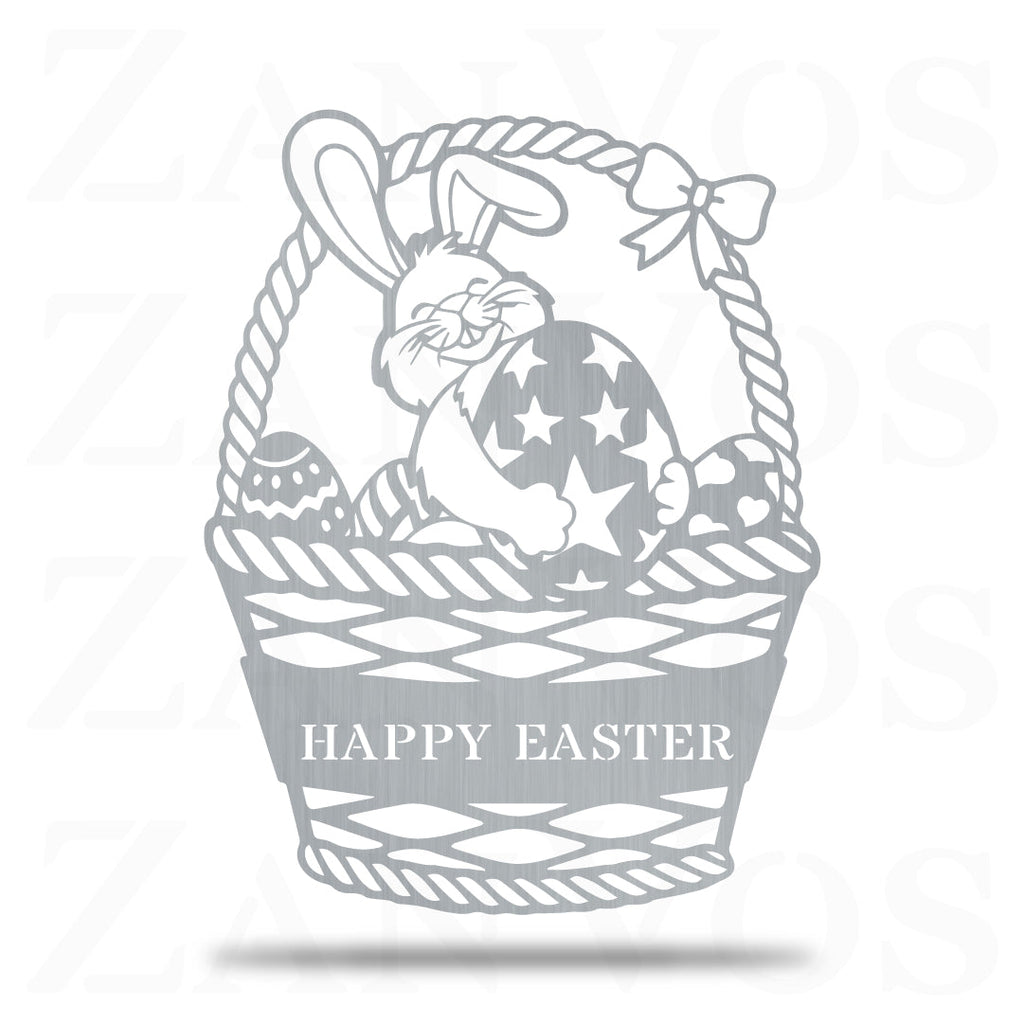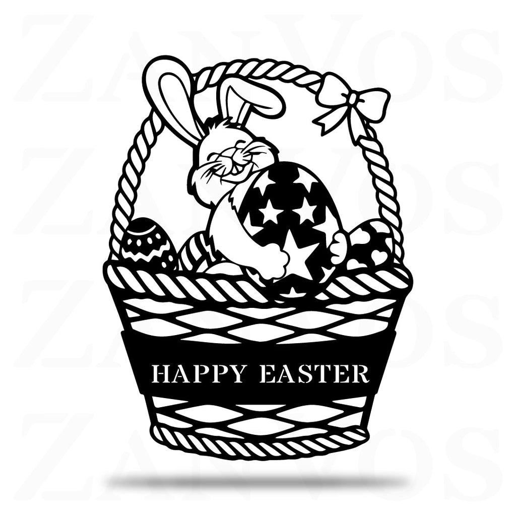 Add a touch of Easter cheer to your home with our Bunny Monogram V2 metal wall art. Made from durable 16 gauge steel and powder coated for long-lasting use, this adorable piece features a bunny hugging an easter egg in basket. Personalize it with your own text for a one-of-a-kind decoration.