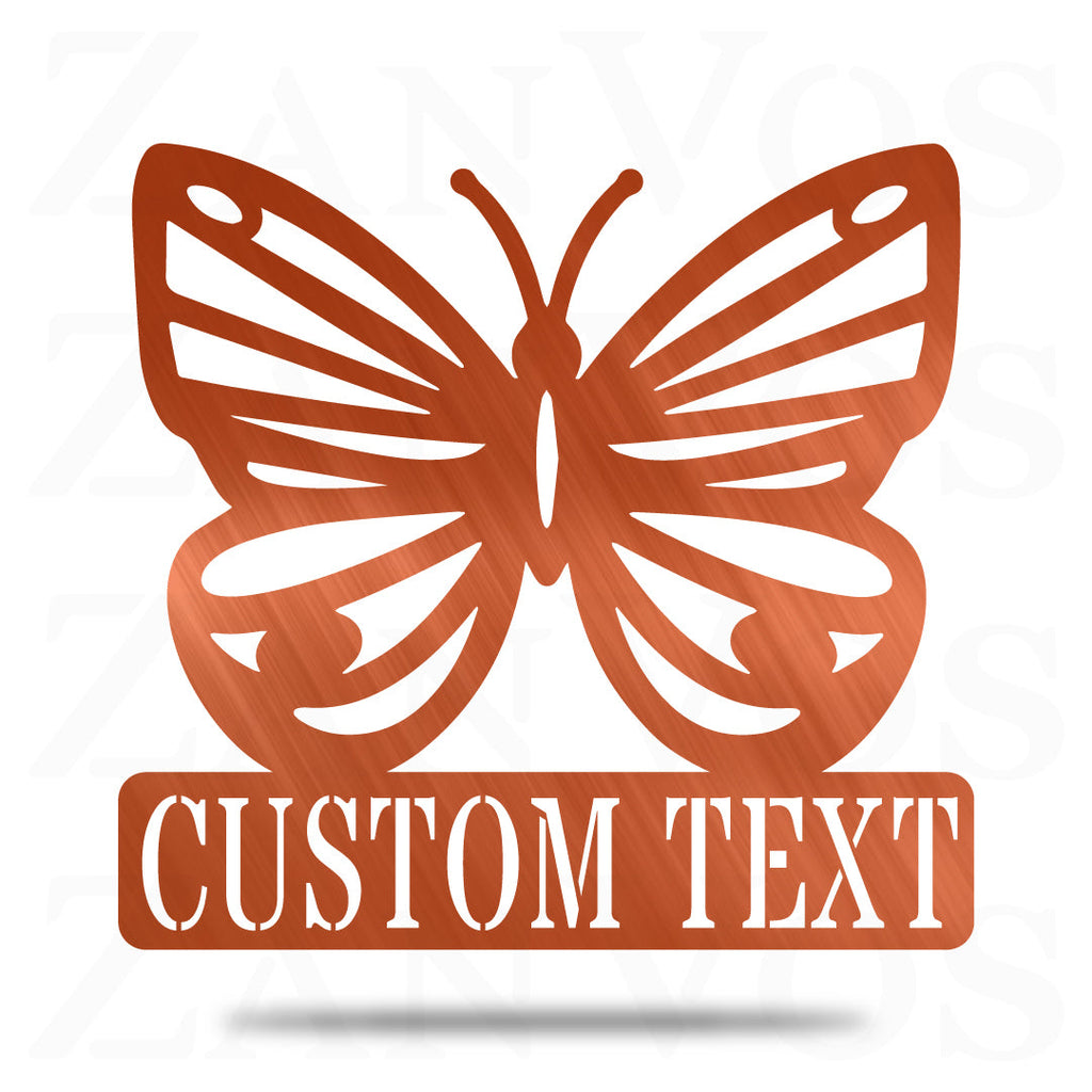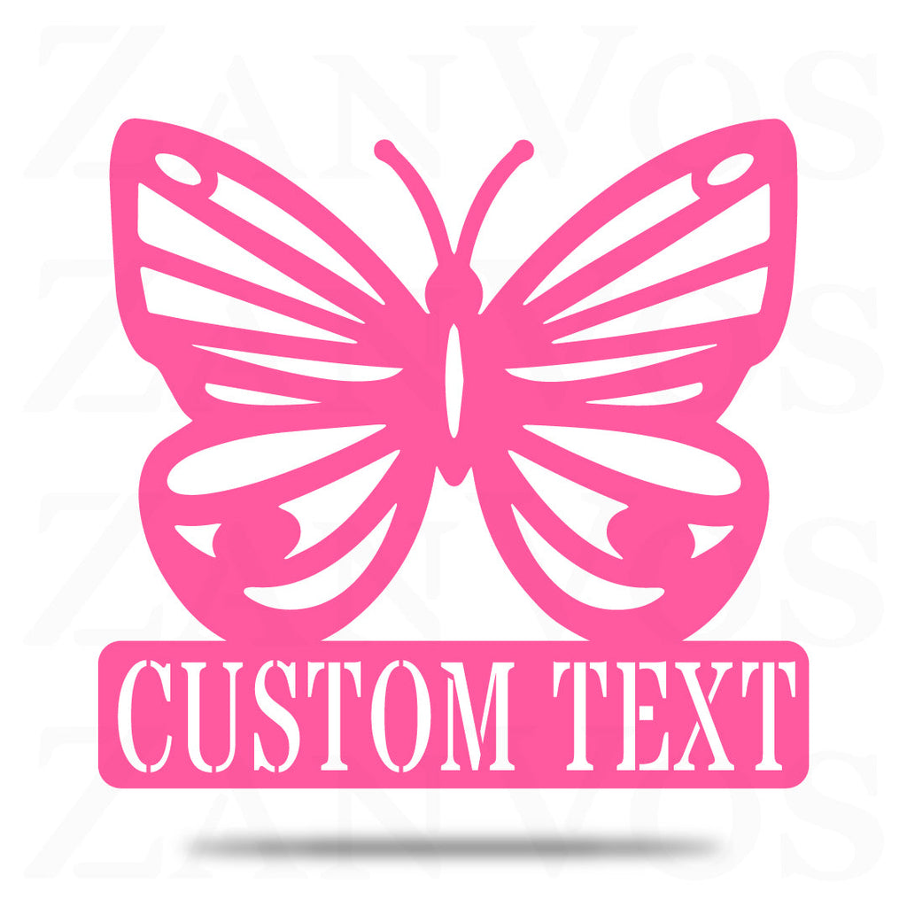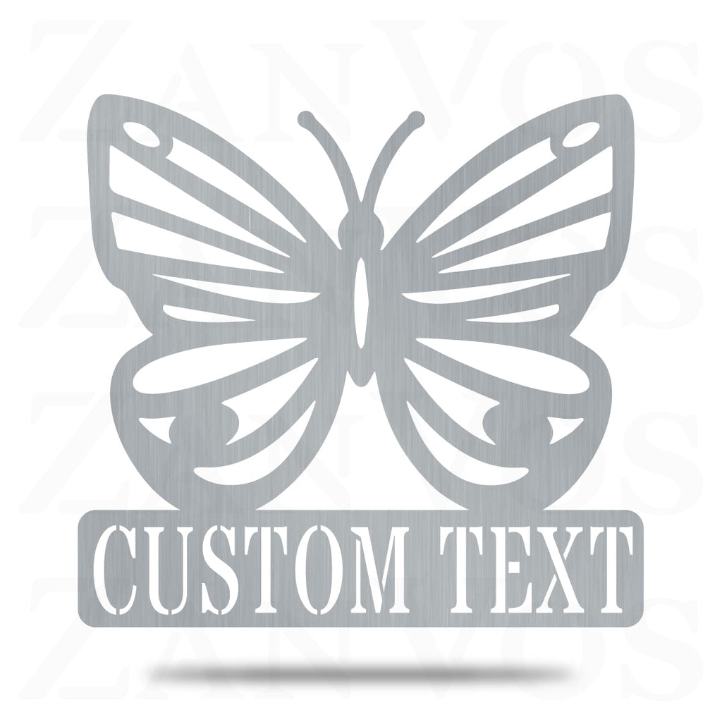 Enhance your home décor with our Butterfly Monogram metal wall art sign. Made with durable 16 gauge steel and powder coated for lasting beauty, this piece features a charming butterfly silhouette and can be personalized with your own text. Perfect for adding a personal touch to any room.