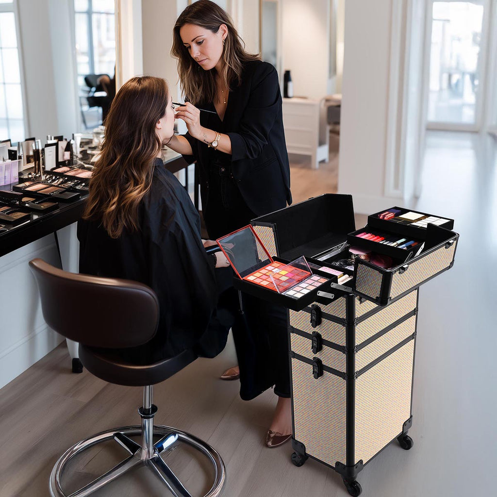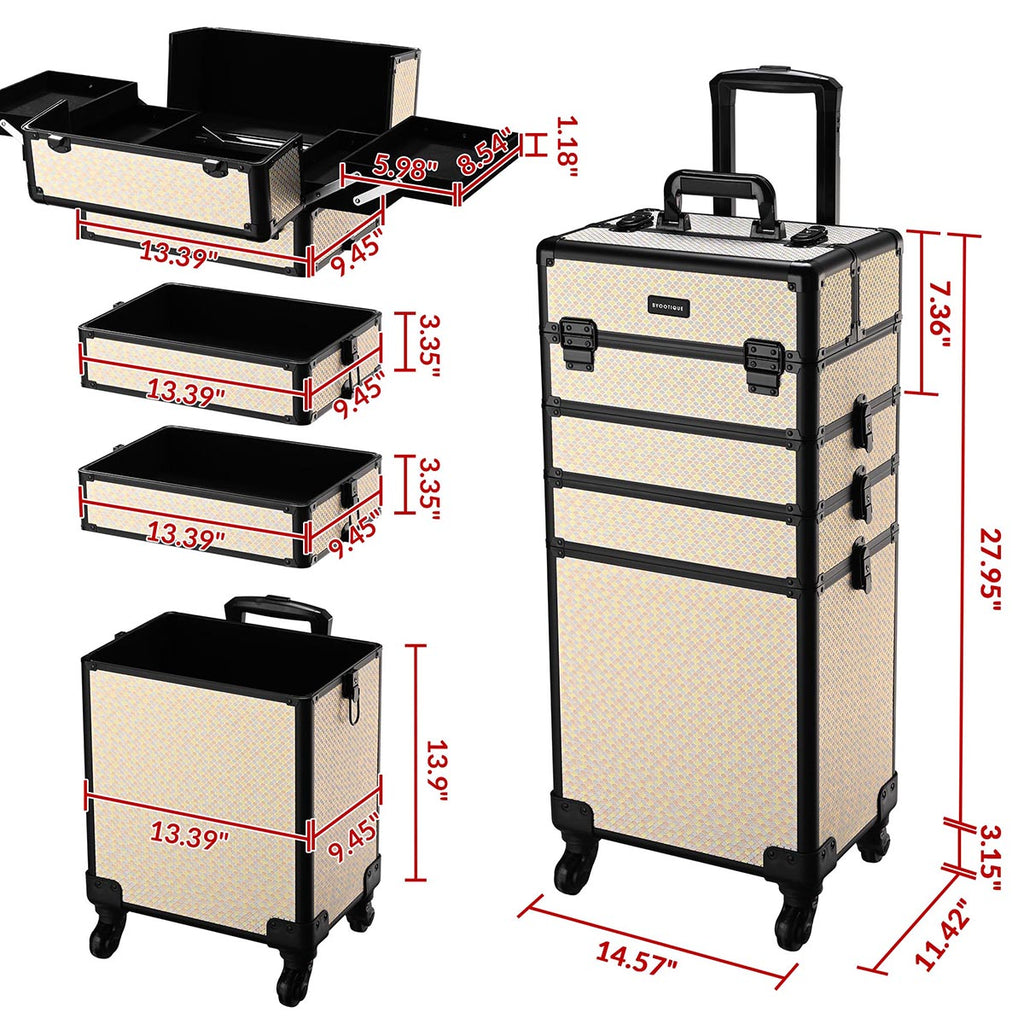 - Transformable Makeup Trolley Case - 4 compartments allow free combination, catering to your every makeup need. You can splice it up for a large train case or assemble it into a 2 to 4-layered trolley. From bridal bliss to editorial shoots, this professional makeup case adapts to any occasion