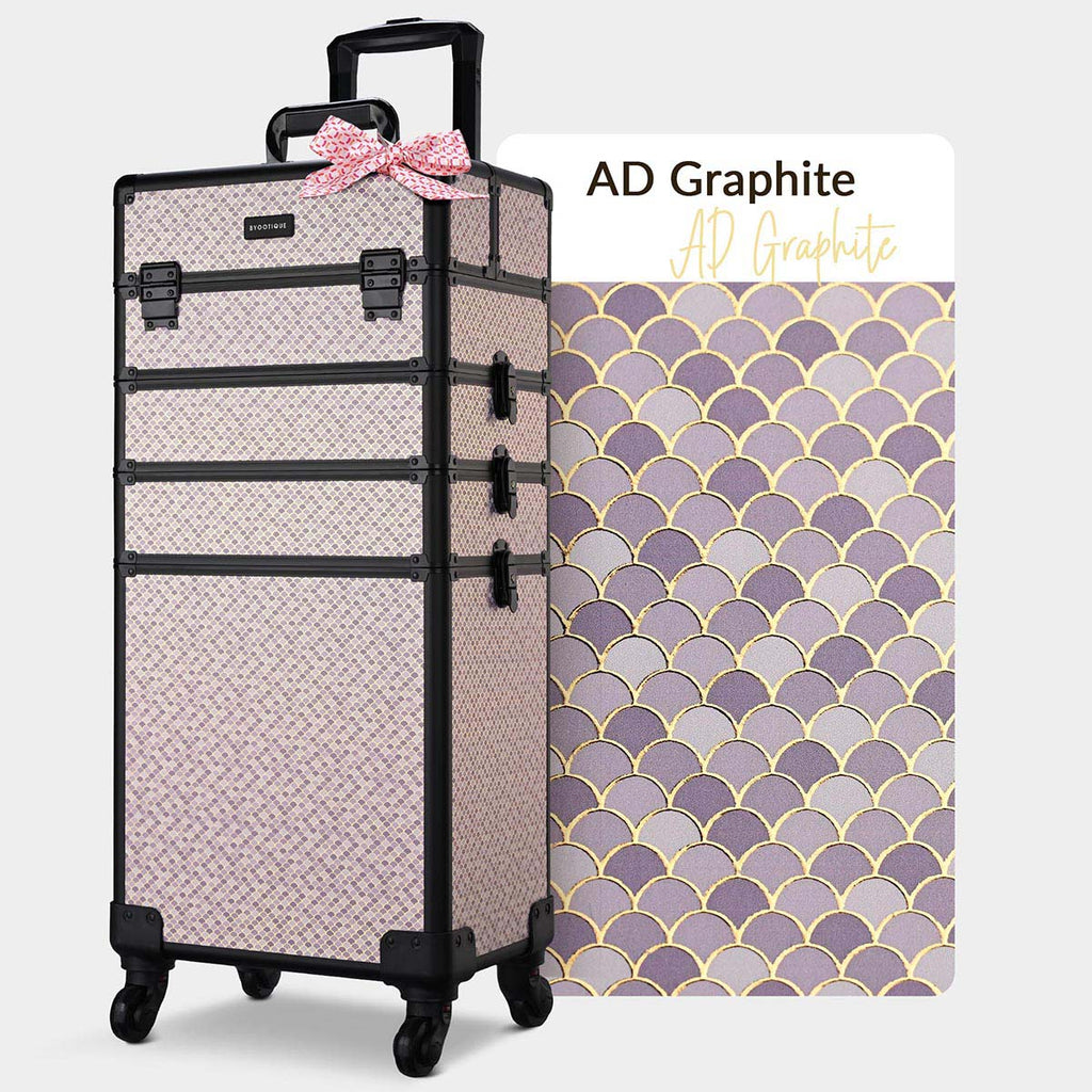 Byootique 4-in-1 professional makeup case with meticulously arranged Art Deco fan motif, transforms everyday into an exquisite work of art. Its 4-in-1 customizable structure provides large capacity and versatile storage for cosmetics, making it ideal for professional makeup artists, beauticians, wedding stylists on the go.