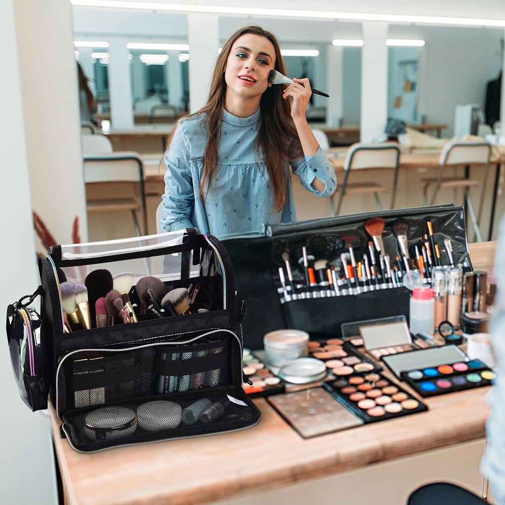 Yescom Makeup Brush Case features a brush holder with adjustable dividers to keep makeup brushes and cosmetics handy and well organized. With a detachable shoulder strap and handle design, it's easy to carry and a perfect choice for professional makeup artists, hair stylists, and freelance.