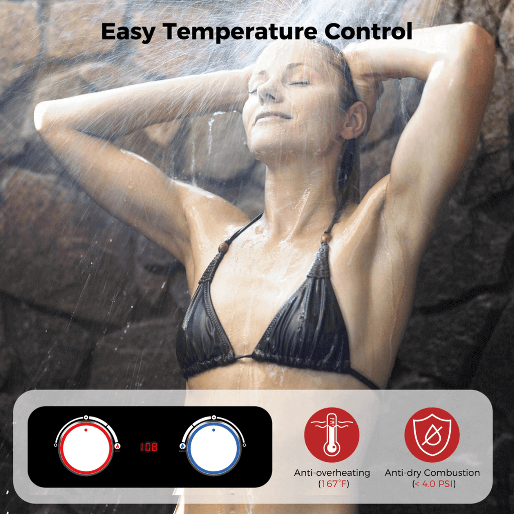• 𝟒.𝟐𝟐 𝐆𝐏𝐌 𝐄𝐧𝐝𝐥𝐞𝐬𝐬 𝐇𝐨𝐭 𝐖𝐚𝐭𝐞𝐫 - 110,000 BTU/hr maximum output power allows for 4.22 gallons per minute of instant hot water. Temperature range 50°F-140°F, get comfortable temperature easily