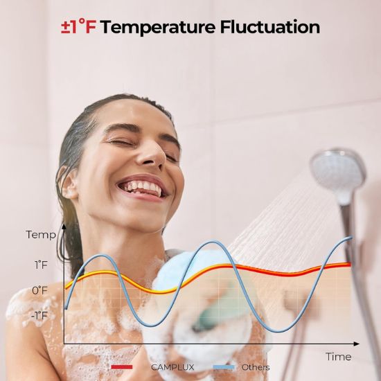 - 【±1℉ Temperature Control】Maintains temperature fluctuations within ±1℉, ensures precise hot water control with advanced sensors and smart chip with 1,000s calculation for consistent comfort shower