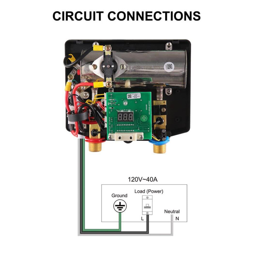 - Multi-angled Mounting: The compact size instant electric water heater requires a connection of 1* 40A circuit breaker & 8 AWG wire. Install close to an outlet for energy saving. Can be mounted Multi-angled, ideal for kitchens, wet bars, schools, hospitals, hair salons and boats. Please make sure it is the right size for you: 3.5kW at 120V, product dimensions 7.8" x 6.3" x 3.9", water pipes fitting: 1/2" NPT male