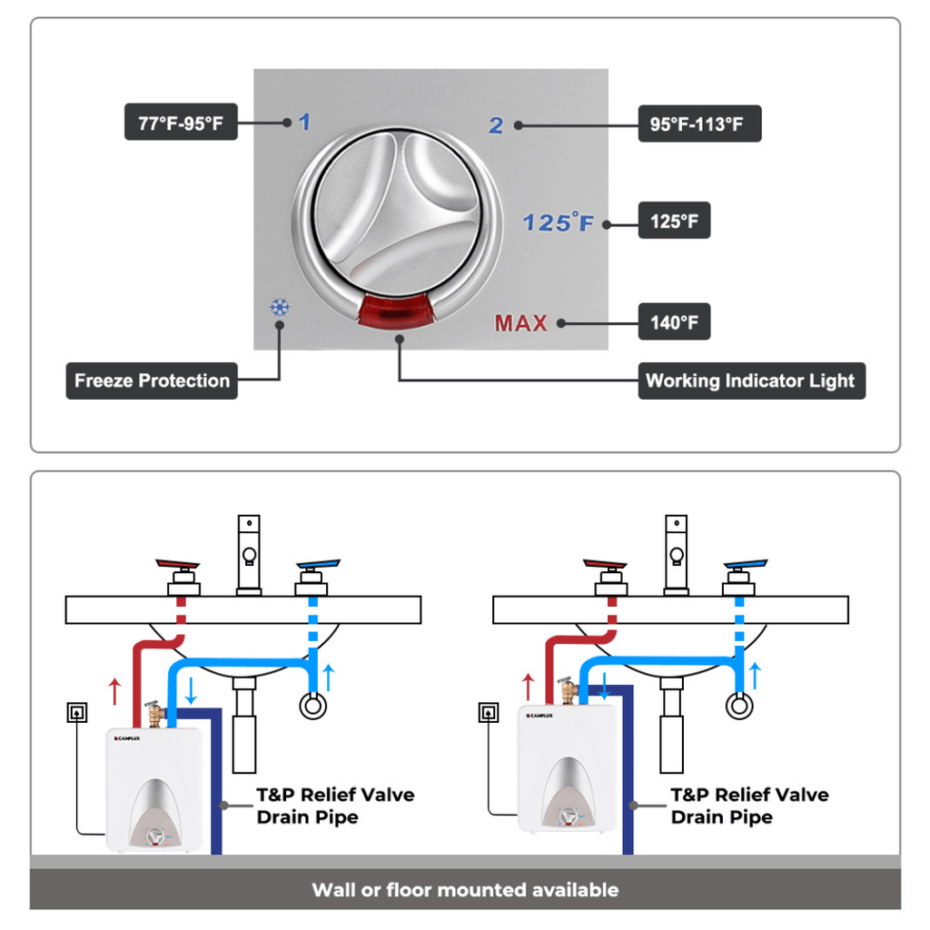 • Saving Energy & Money- Under sink water heater built-in insulation foam, reduce heat loss