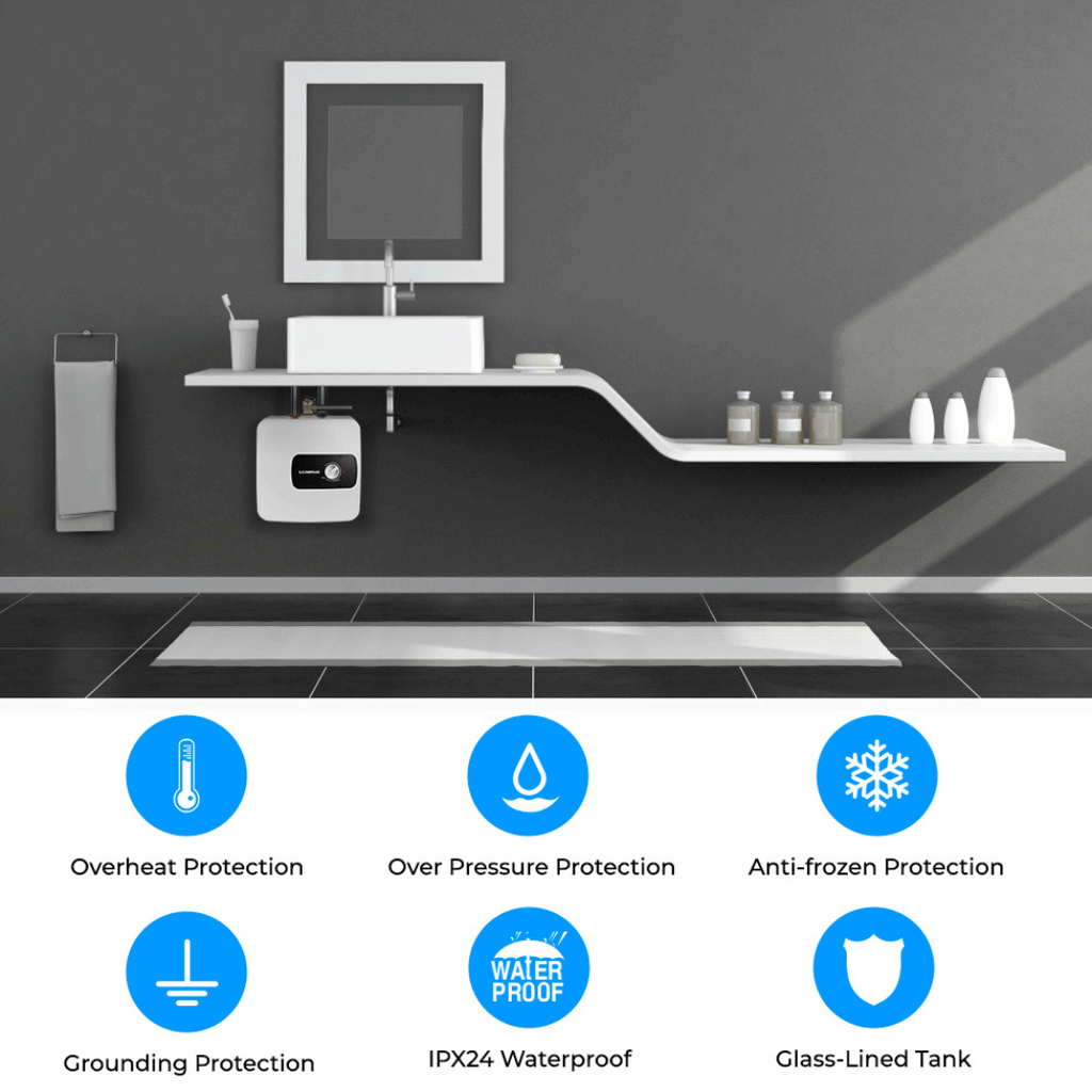 • HIGH QUALITY & LONG LAST - The small water heater has UL listed and uses a glass-lined tank with good insulation, and freezing mode can prevent the water tank from freezing, ensure a long service life