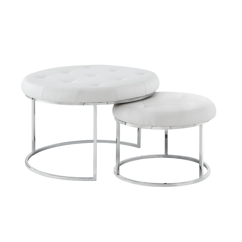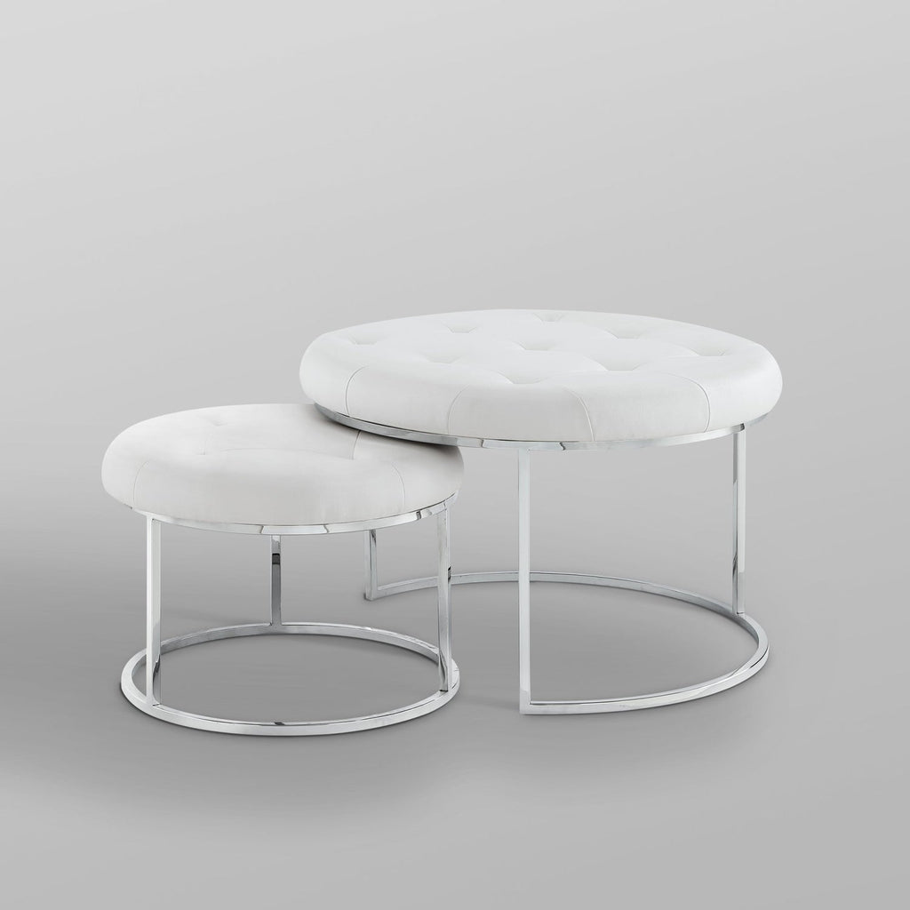 - STURDY CONSTRUCTION – This beautiful set of cocktail ottomans is made of stainless steel sturdy construction that guarantees years of enjoyment of this beautiful room decor. With a whimsical base round silhouette, it speaks to an effortless design concept. Perfect for a contemporary space, these ottomans deliver personality and sophistication