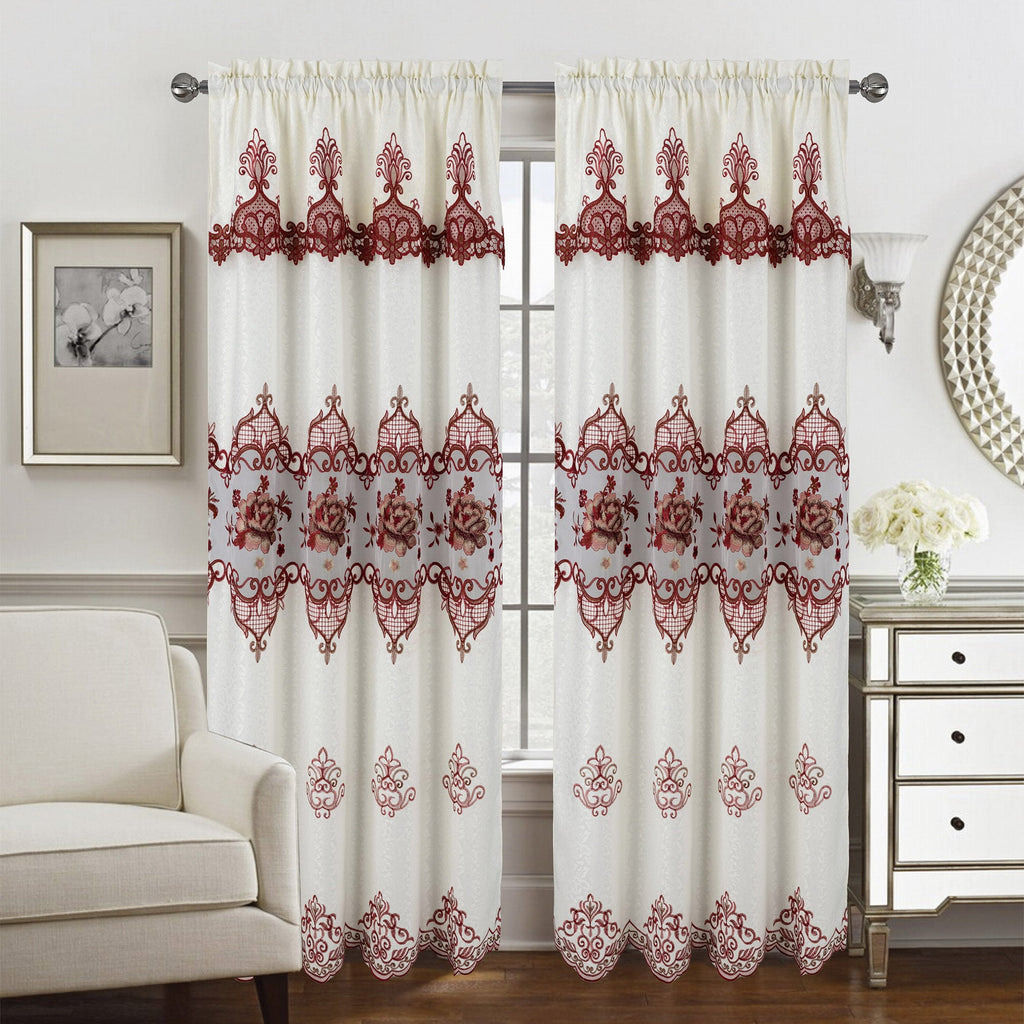 Caroline Floral Macramé Rod Pocket Window Panel With Attached Valance, 55x84 Inches