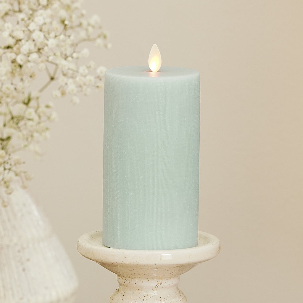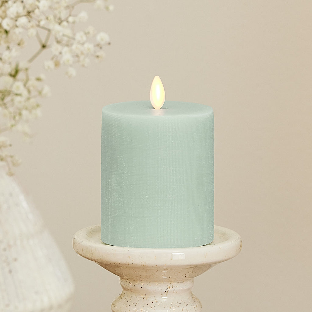 The beautiful texture of these fresh mint chalky linen wax pillars will provide an elevated accent to your Easter décor this spring season. Casting an inviting and worry-free glow in a soft pastel color, the linen texture finish of these flameless candle pillars add a crisp and spring-fresh charm while radiating with patented moving-flame technology. Mix-and-match these pillars in the various Luminara Easter shades or arrange them with our bunny flameless candles for a cheerful and festive Easter look.