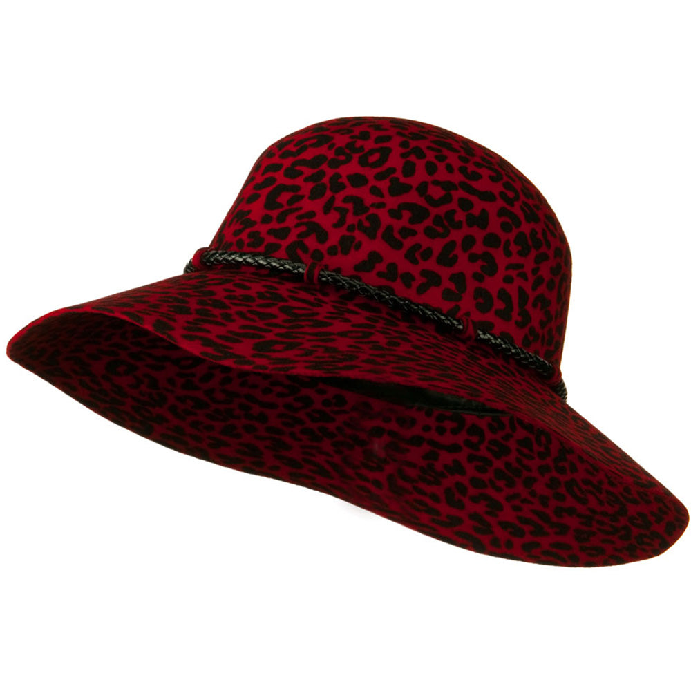 Design Details, Bright Red with Cheetah Prints, Wide and Floppy Brim, Woven Leatherette Band