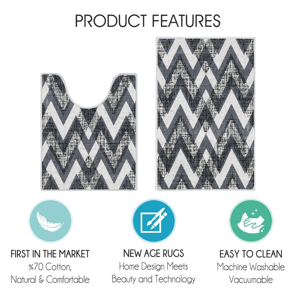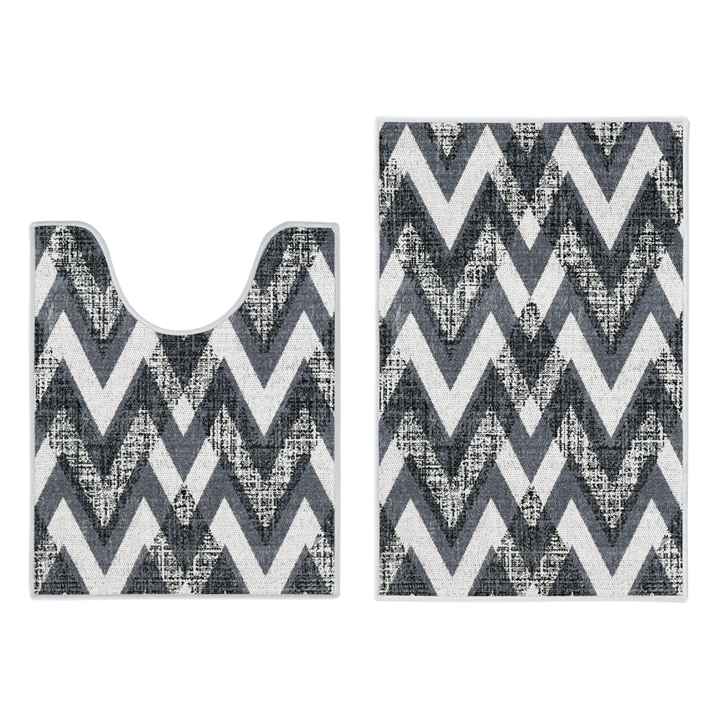 Chevron Design 2 Piece Bathroom Rugs Set | Gray
